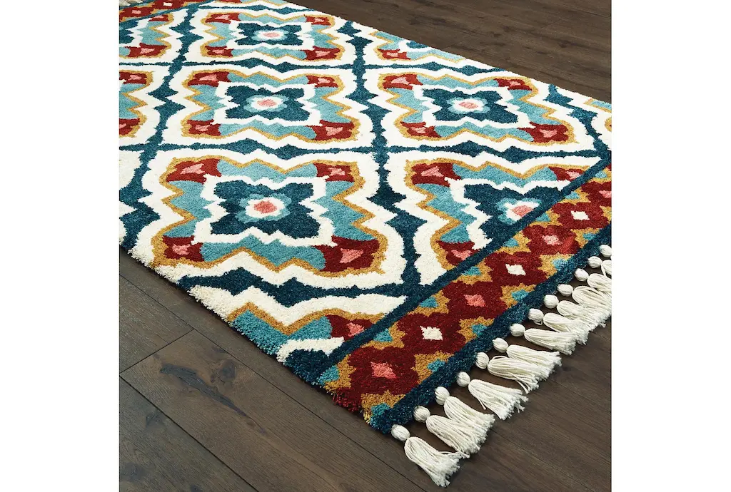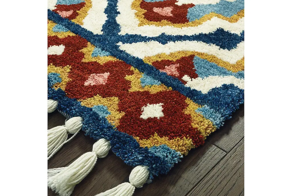 This stunning 5'x8' Tatiana Navy rug with tassels is the perfect addition to any modern indoor space. Crafted with high-quality fiber, this rug is both stylish and durable.