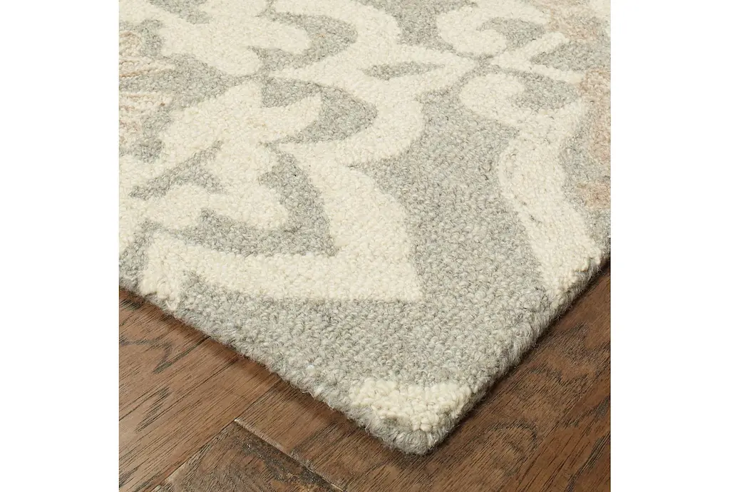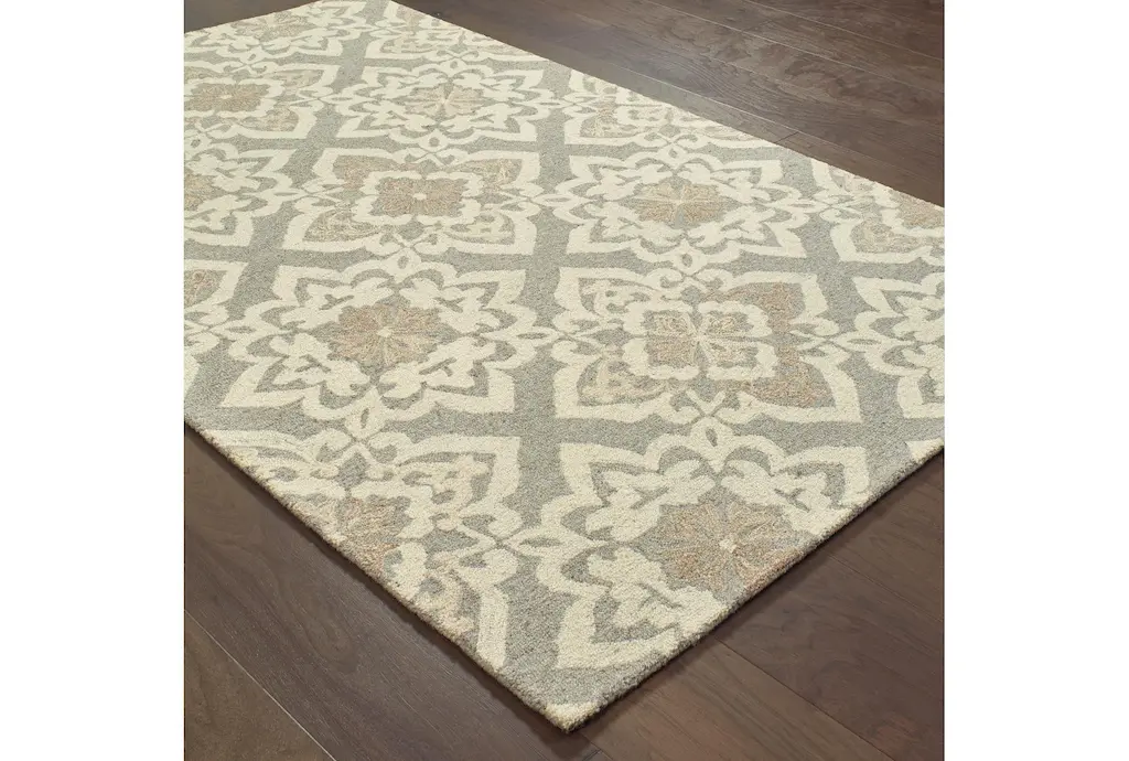 5'x8' Rug-Tinley Traditional Botanical Wool Fiber Grey Diamonds | Rectangle