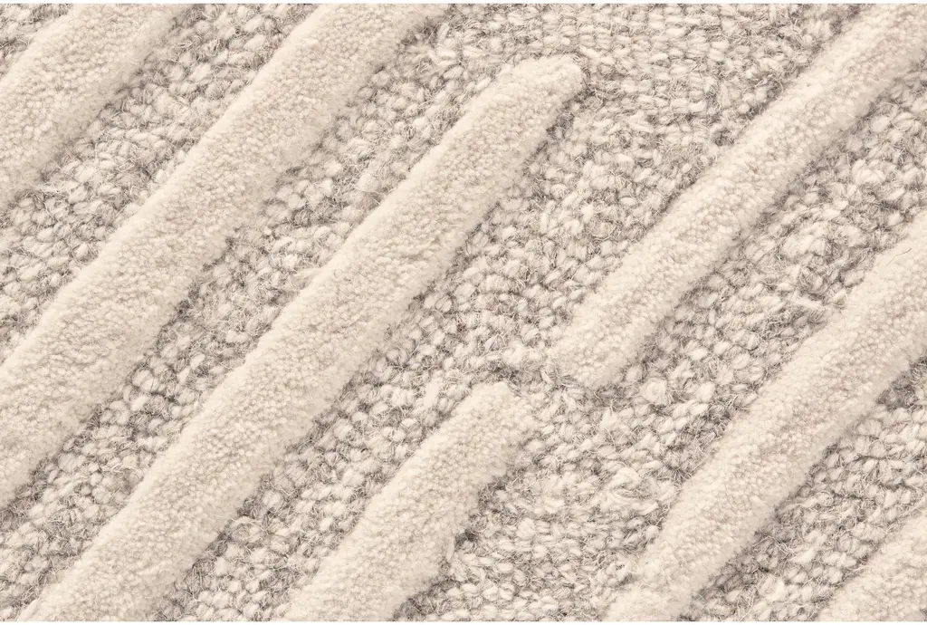 Enhance your living space with the 5'x8' Wool Rug featuring tribal lines in ivory and natural tones. This low pile geometric rug is perfect for adding a rustic touch to your interior decor. Its rectangle shape and soft color palette make it a versatile addition to any room.