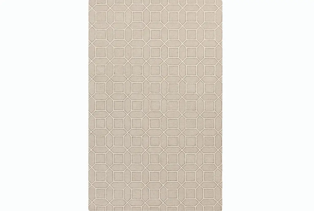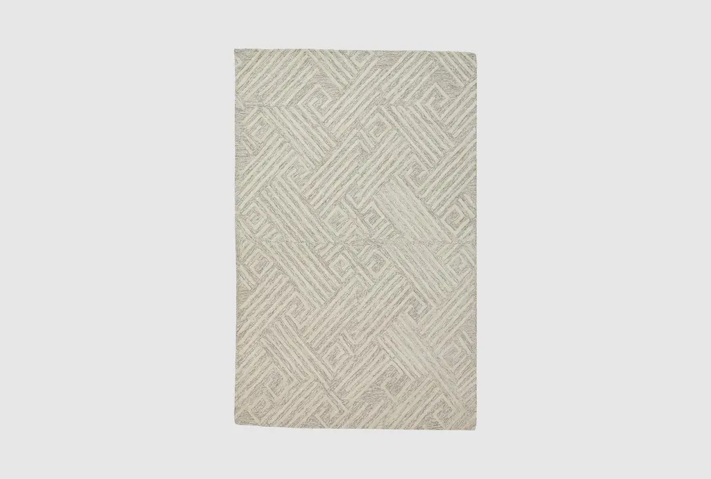 5'x8' Wool Rug-Tribal Lines Ivory/natural | Low Pile | Geometric | Rectangle