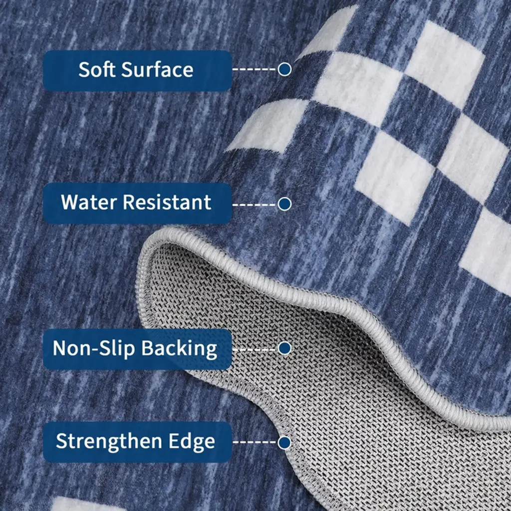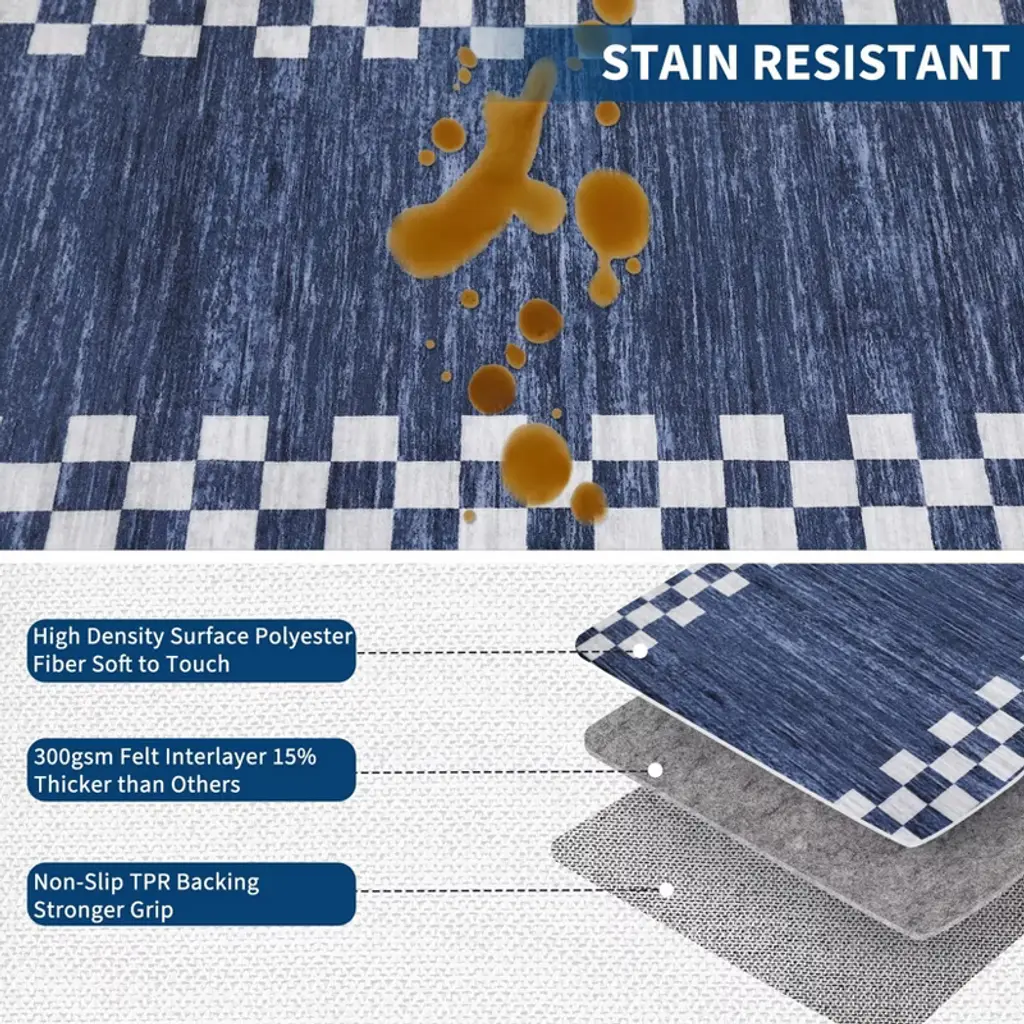 With non slip backing, safe for families and pets, ensuring a friendly environment for all.This carpet is designed with an elegant and intricate border pattern framing the edges, adding a refined and finished look to the overall design.This washable rug features a stain resistant, high durability construction - making it perfect for high traffic areas.The low pile provides a flat and even surface that is both easy to maintain and perfect for high-traffic areas, while still maintaining a soft and comfortable feel underfoot.Effortlessly preserved through simple care methods like hosing or machine washing, spot cleaning with a gentle detergent, and routine vacuuming to ensure it stays pristine and vibrant.