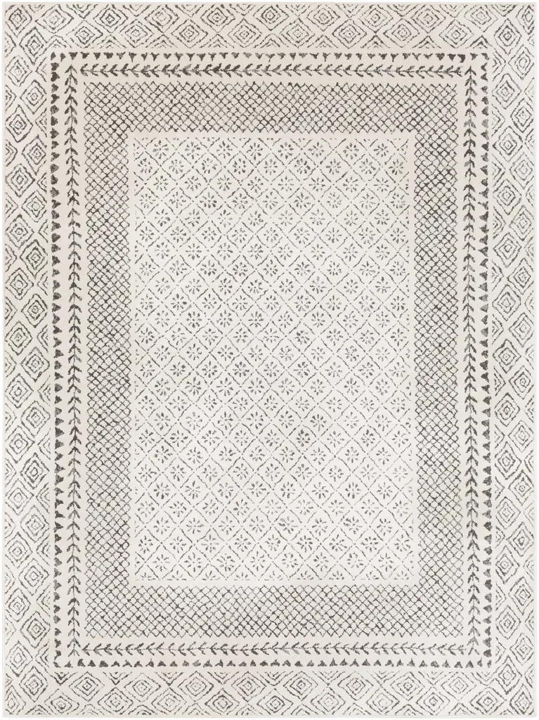 6'5"x6'5" Square Rug-Modern Global Low/high Grey And Beige Fiber | Low Pile | Geometric By Surya