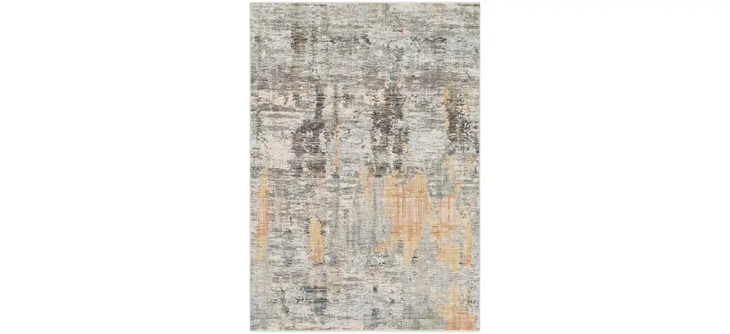 6'5"x9'5" Fiber Rug-Faux Bois Ivory/red | Low Pile | Abstract | Rectangle