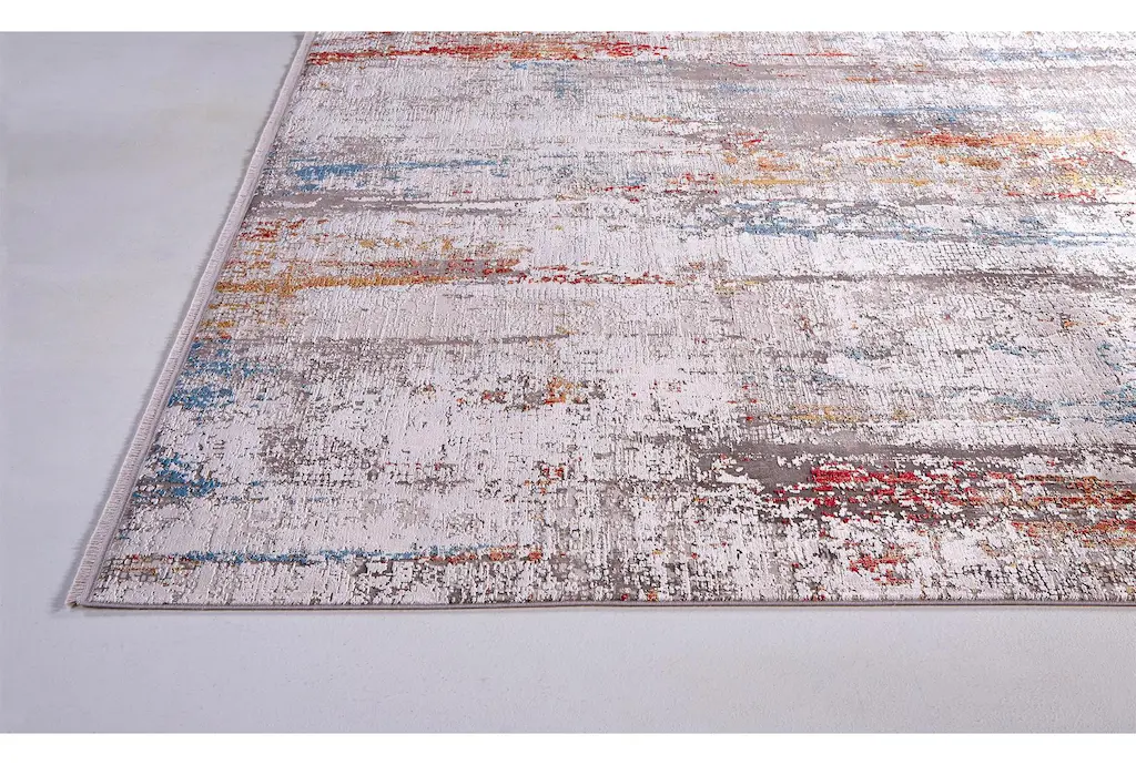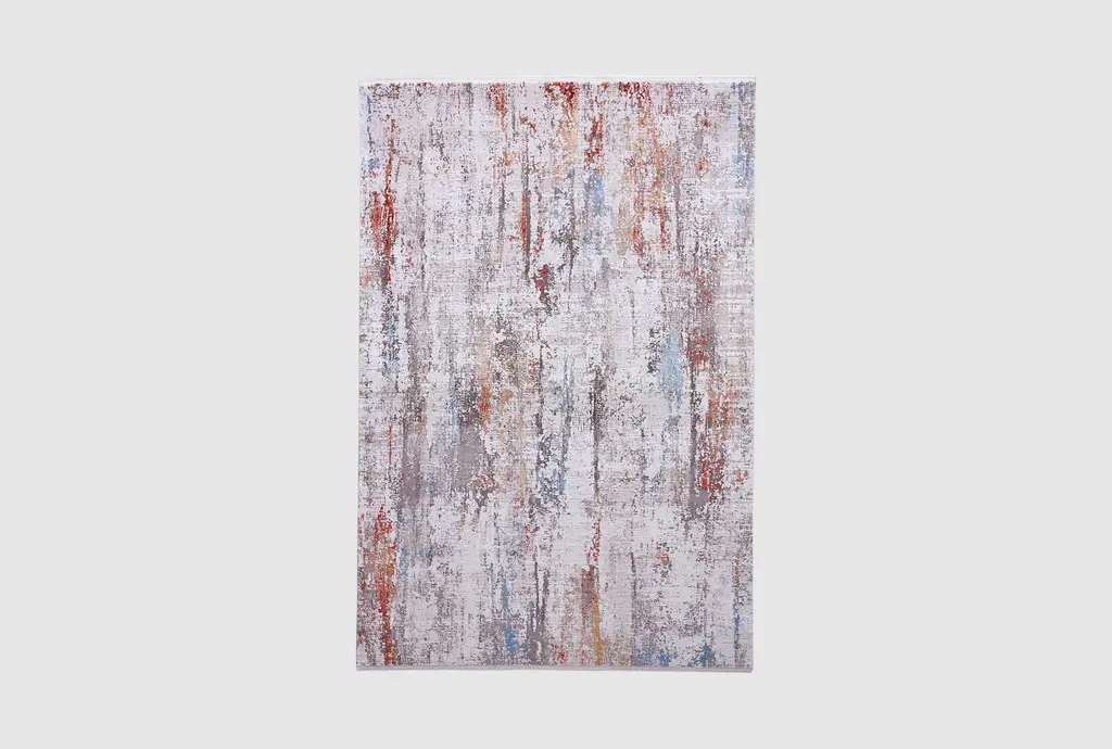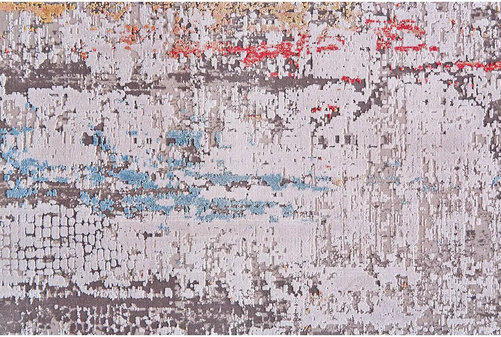 Enhance your living space with the 6'5"x9'5" Fiber Rug-Faux Bois Ivory/Red. This contemporary rectangle rug features an abstract design in multicolor, perfect for adding a touch of modernity to any room. Constructed with a blend of viscose, acrylic, cotton, and polyester, this low pile rug is both durable and soft underfoot, making it ideal for indoor use.