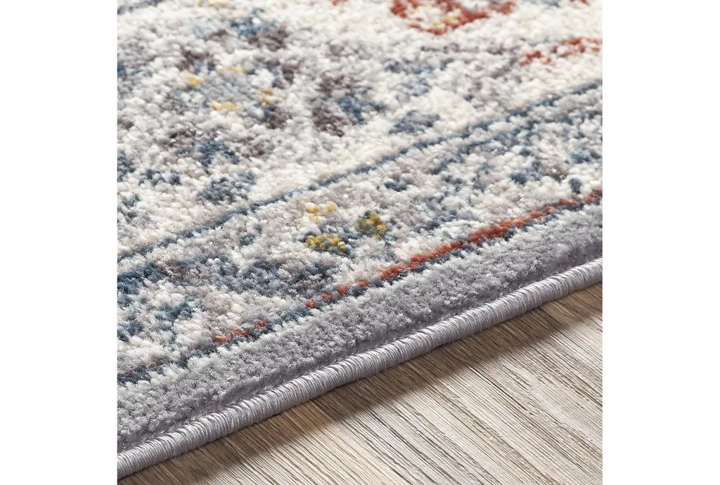 Enhance your dining room with the 6'6" Round Fiber Rug in a traditional botanical multicolor design by Surya. This low pile rug features a beautiful blend of medium grey, taupe, pale blue, teal, cream, burnt orange, lime, and charcoal, creating a vibrant yet sophisticated look. Made from 100% polypropylene, this rug is both durable and easy to maintain.