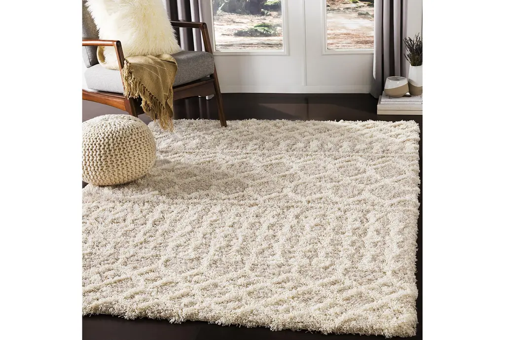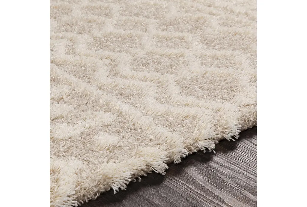 6'6" Rug-Modern Global Plush Shag Fiber Cream And Beige | High Pile | Round By Surya