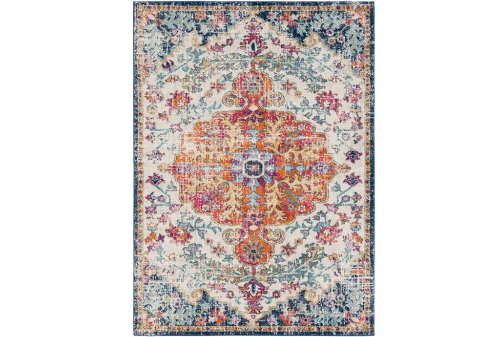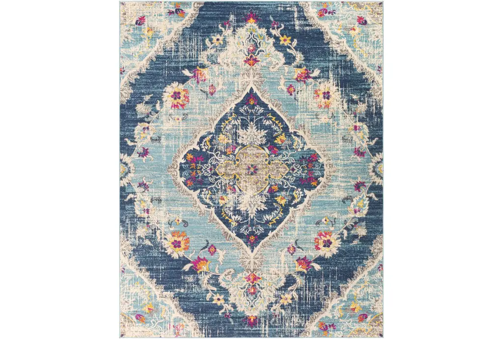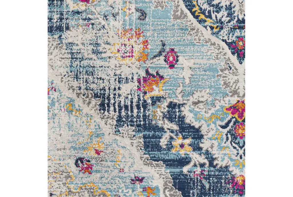 Add a touch of modern charm to your living room with the 6'6"X6'6" Fiber Rug in modern sky blue. Made from durable polypropylene, this low pile rug is perfect for indoor use and features a stunning botanical motif. The square shape and vibrant colors including sky blue, navy, beige, medium grey, bright pink, saffron, burnt orange, and silver grey will complement any decor style.