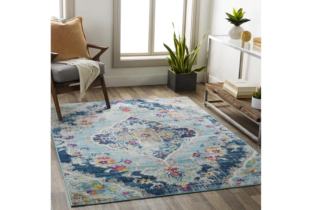 6'6"x6'6" Fiber Rug-Modern Sky Blue Colorful | Low Pile | Botanical | Square By Surya