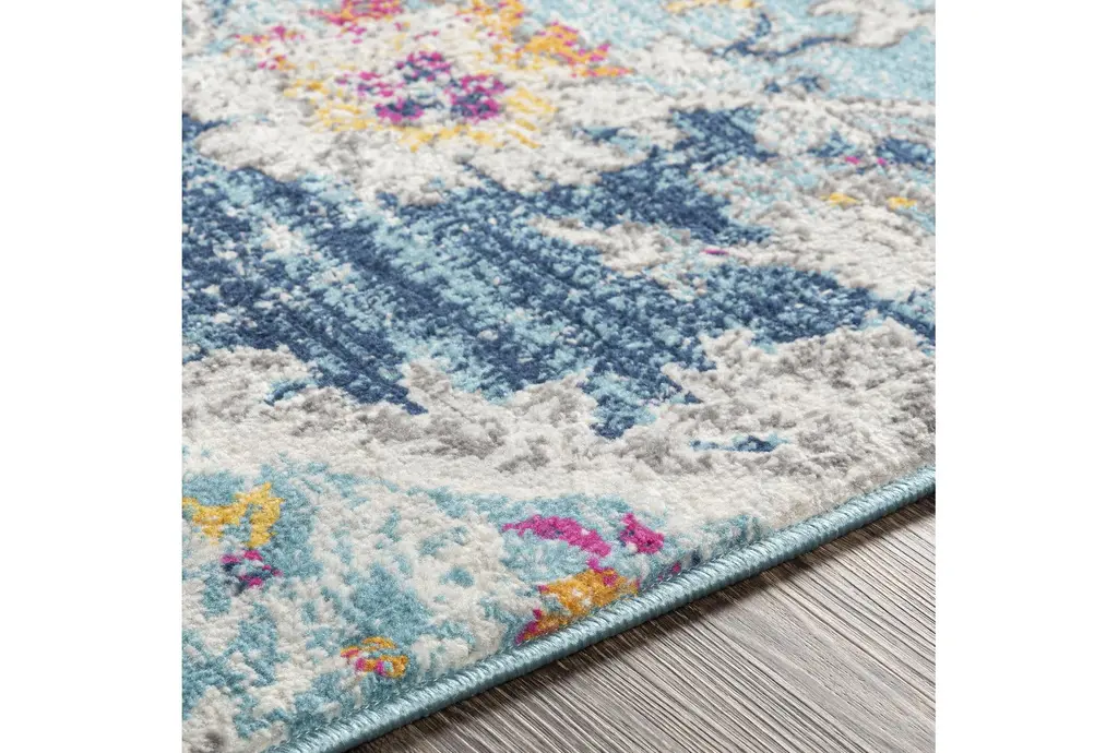 6'6"x6'6" Fiber Rug-Modern Sky Blue Colorful | Low Pile | Botanical | Square By Surya