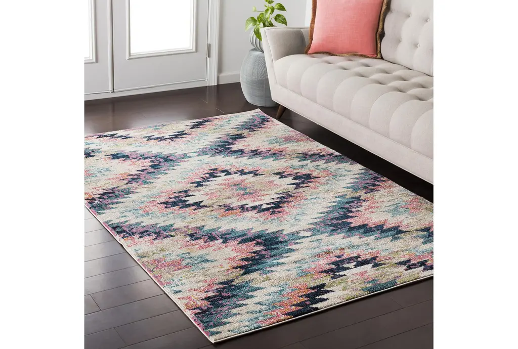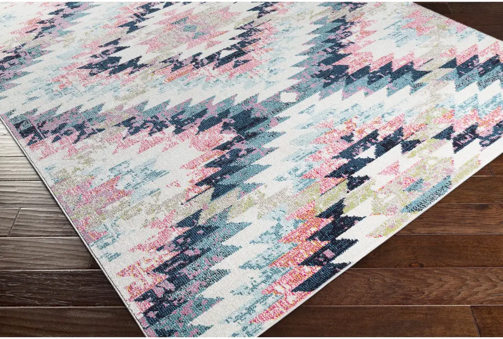 6'6"x6'6" Fiber Rug-Modern White & Blue Geo Pattern | Low Pile | Geometric | Square By Surya