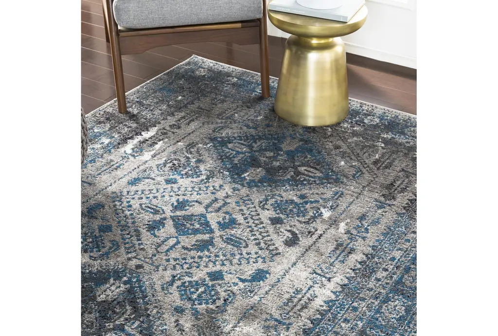 6'6"x9' Fiber Rug-Traditional Grey & Blue Subtle | Low Pile | Oriental | Rectangle By Surya
