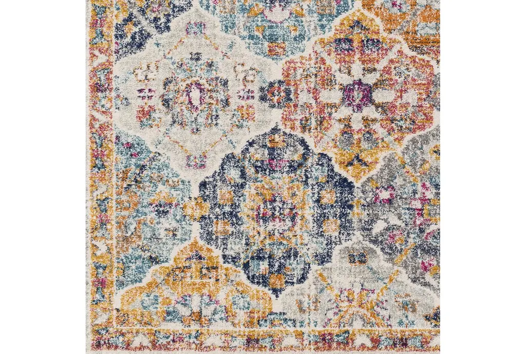 Bring vibrant color and traditional charm into your home with the 6'6"x9' Oval Fiber Rug by Surya. Featuring a bold multicolor lattice pattern, this rug combines saffron, burnt orange, dark blue, garnet, teal, charcoal, and beige hues to create a stunning visual impact. Perfect for indoor use, its low pile design ensures easy maintenance and durability.