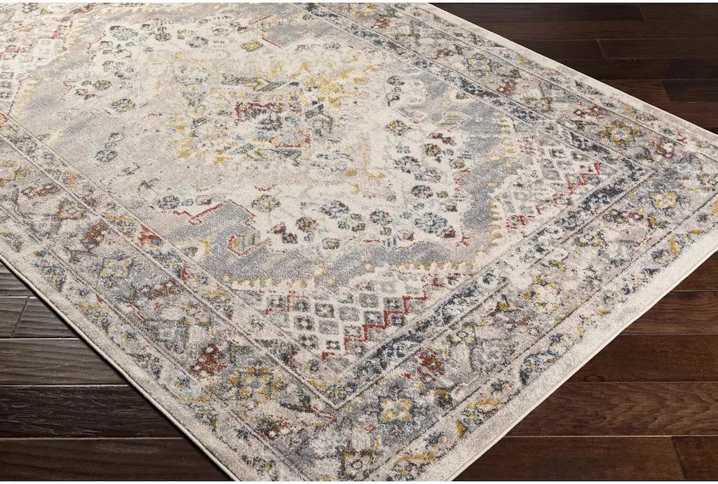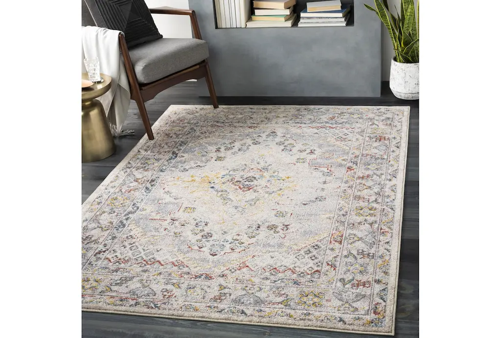 6'6"x9' Rectangle Rug-Traditional Botanical Taupe Medallion Fiber | Indoor | Low Pile By Surya