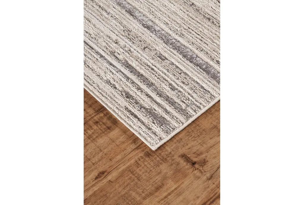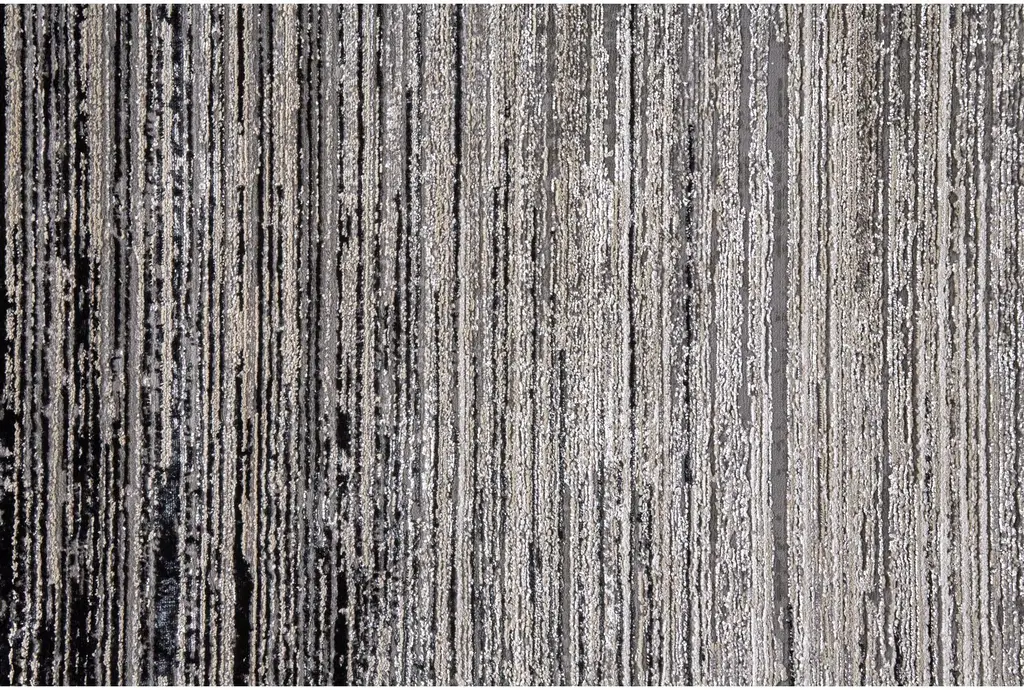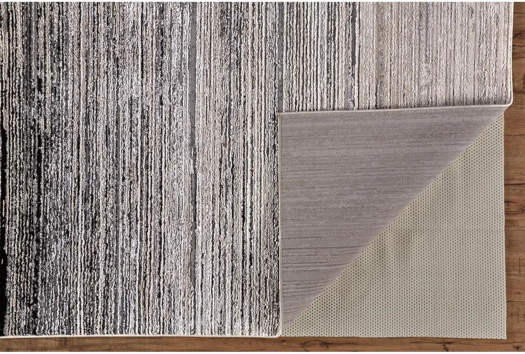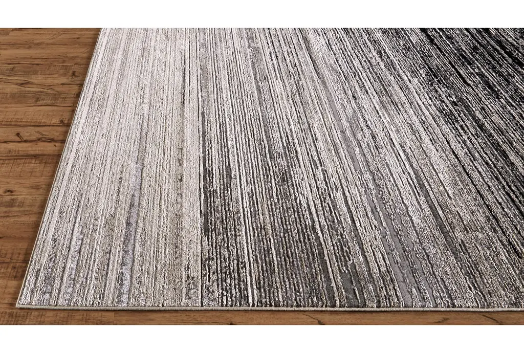 6'6"x9'5" Cotton Jute Rug-Silver Metallic And Black Horizontal Ombre | Low Pile | Layering | Rectangle | Abstract