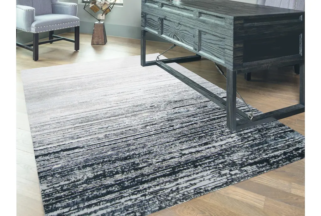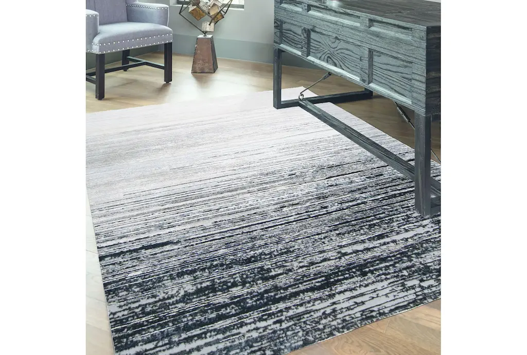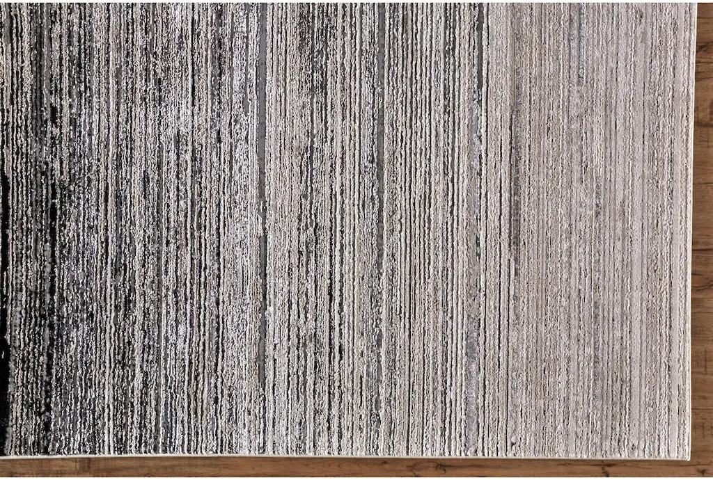 6'6"x9'5" Cotton Jute Rug-Silver Metallic And Black Horizontal Ombre | Low Pile | Layering | Rectangle | Abstract