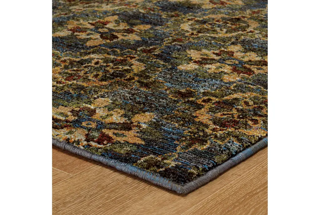 Enhance your living space with the 6'6"x9'5" Fiber Rug-Safaa Traditional Botanical Tile Indigo in a beautiful rectangle shape. This traditional rug features a stunning blur/gold color palette, adding a touch of sophistication to any room. Made from durable nylon and polypropylene, this rug is designed to withstand everyday wear and tear. Perfect for indoor use, this rug is proudly made in the USA.