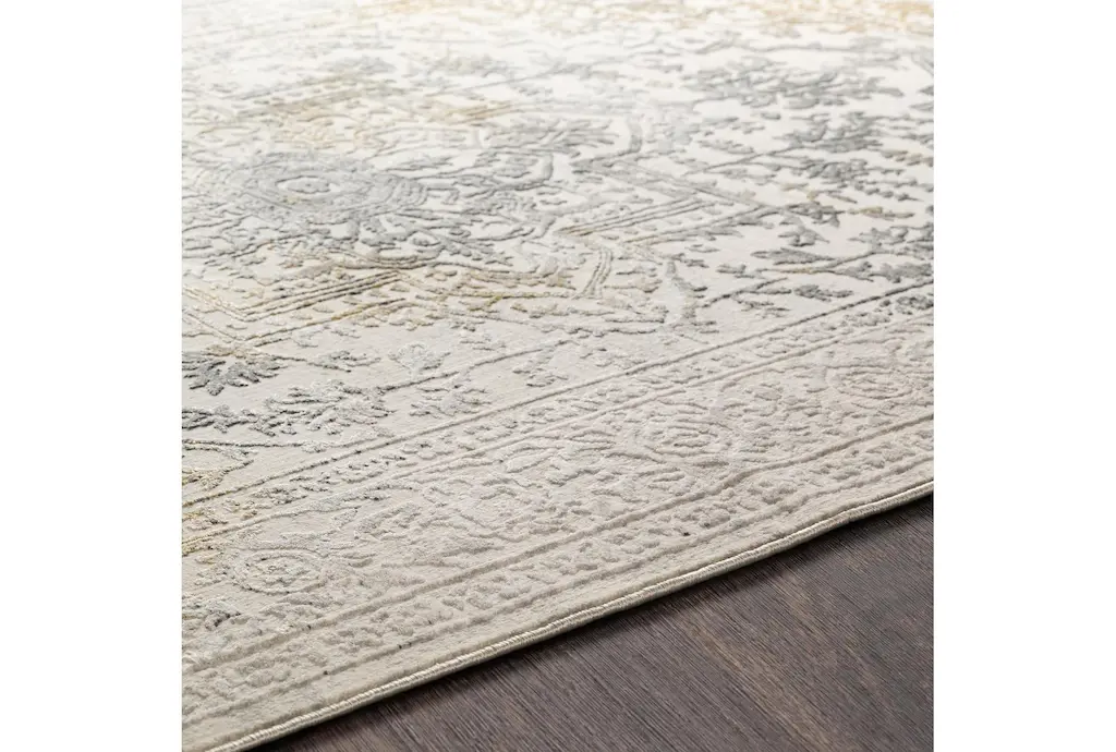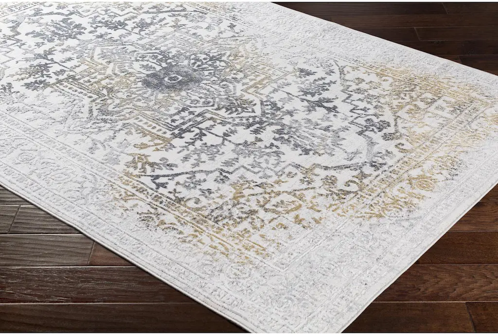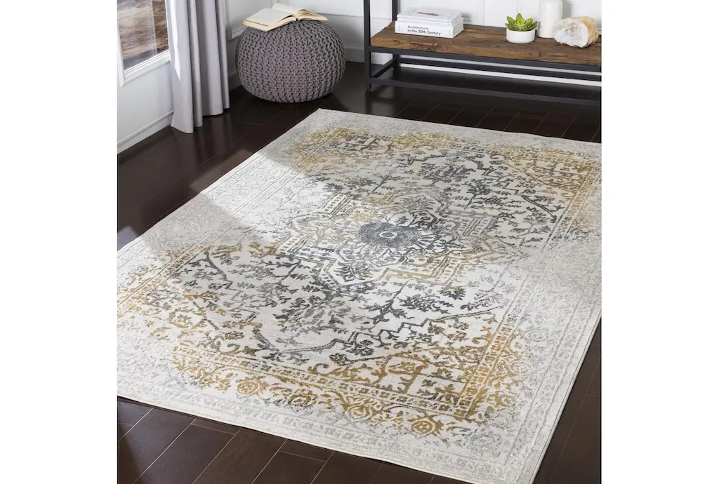 6'6"x9'5" Fiber Rug- Traditional Botanical Charcoal / Mustard Tatoo | Low Pile | Rectangle By Surya