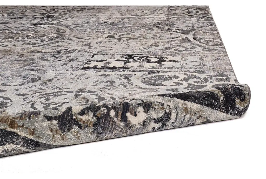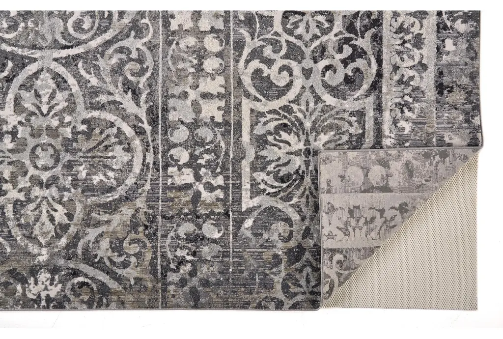 Enhance your living space with the 6'6"x9'5" Rug-Alexander Traditional Botanical in Charcoal/Ivory. This low pile, rectangle rug features a timeless floral motif that adds a touch of sophistication to any room. Made from a blend of polyester, polypropylene, jute, and cotton, it is designed for durability and comfort.