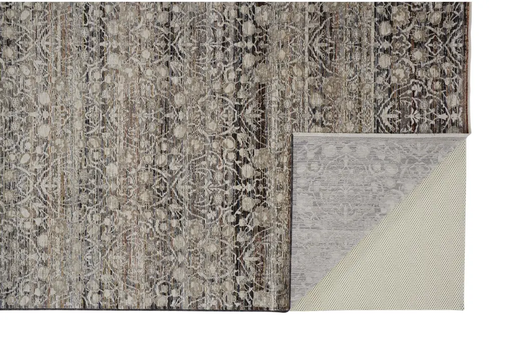 This 6'6"x9'5" rug features a transitional traditional botanical design in a stunning stone color. Made from a blend of polyester, viscose, and cotton, it offers both durability and softness. Ideal for indoor spaces, this low pile rug is perfect for layering in living rooms.