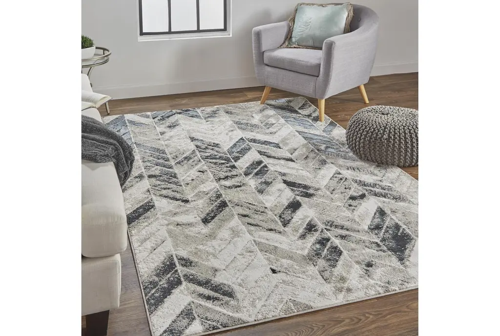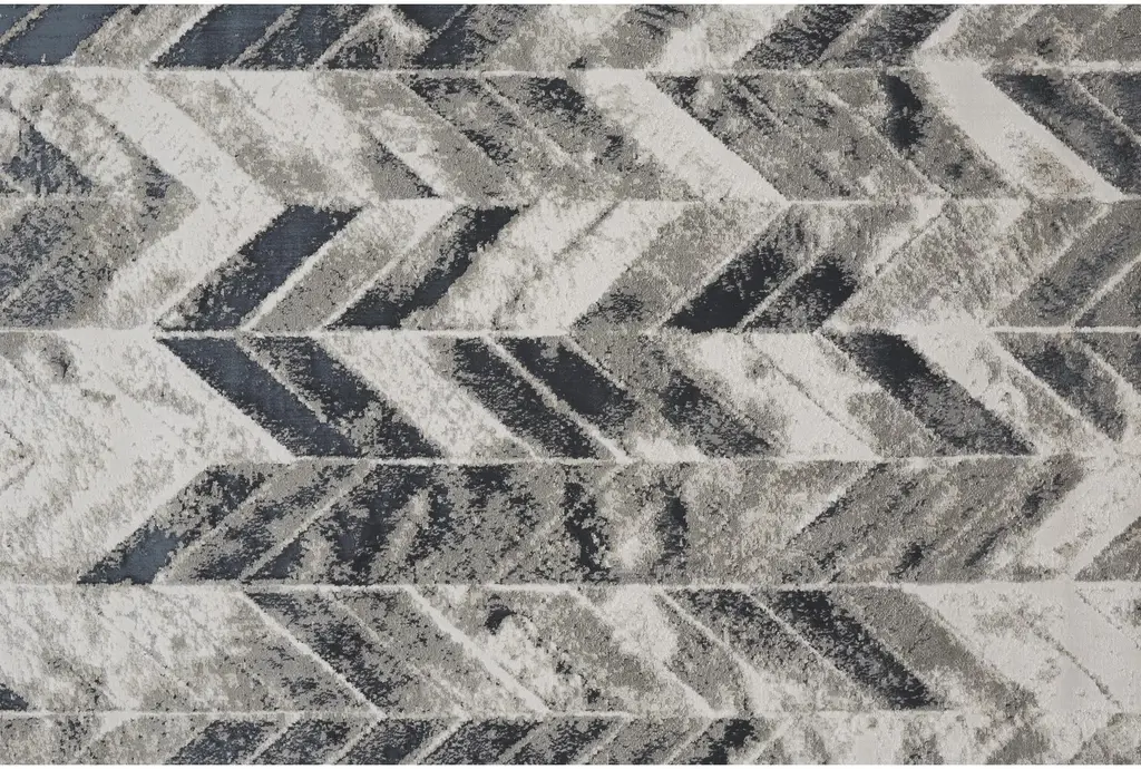 6'6"x9'5" Rug-Modern Silver Metallic And Black Chevron | Layering | Low Pile | Rectangle