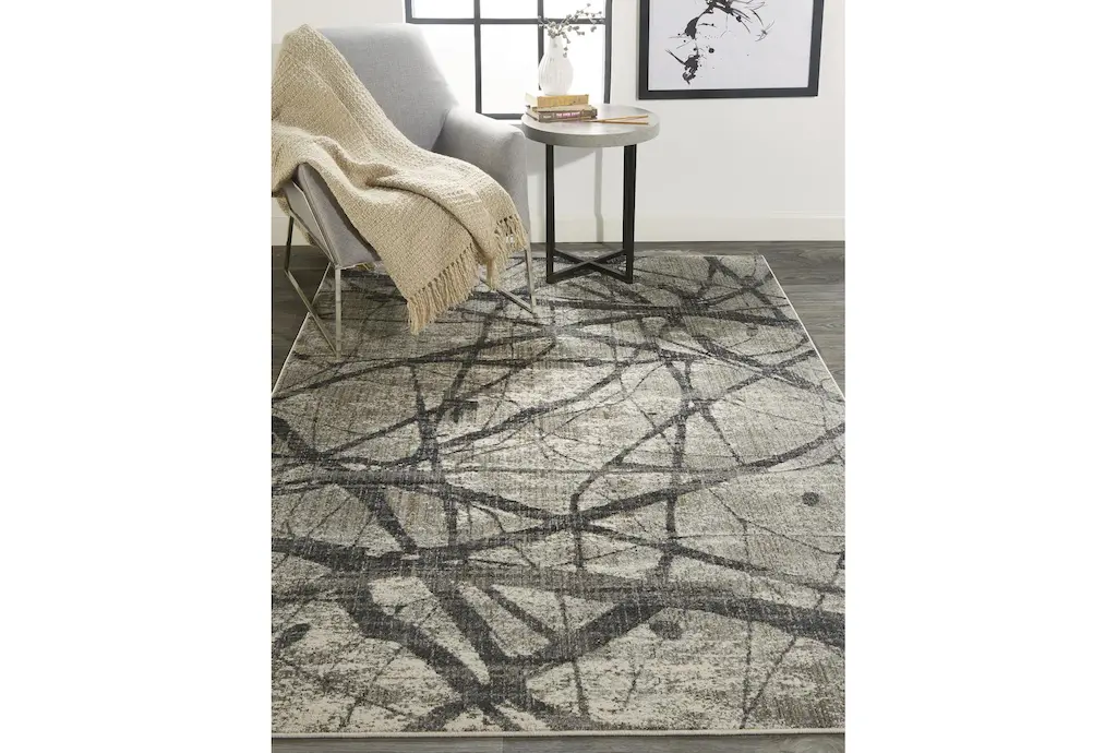 This 6'6"x9'5" Rug-Natural Abstract Charcoal/Grey is the perfect addition to any casual space with its low pile and versatile layering capabilities. Made of durable polyester, this indoor rug will provide both comfort and style to your home decor.