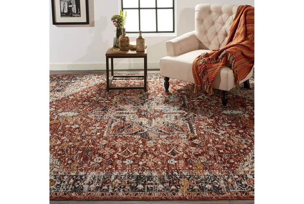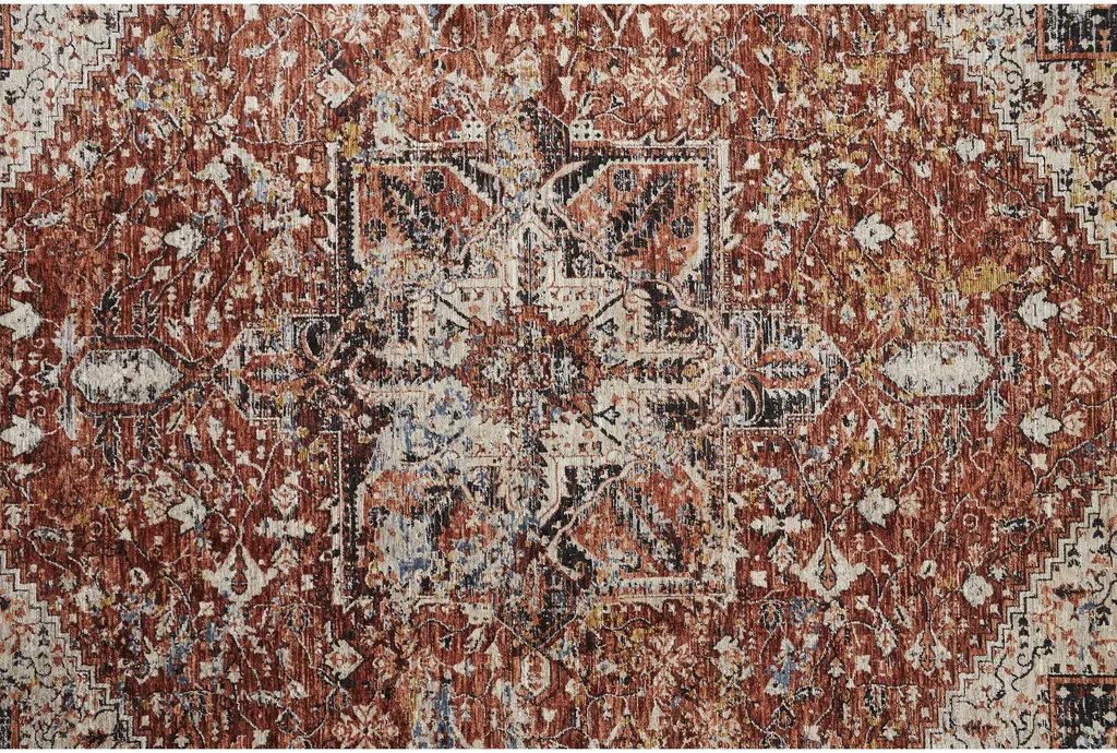 6'6"x9'5" Rug-Ornate Traditional Medallion Rust | Layering | Botanical | Low Pile | Rectangle