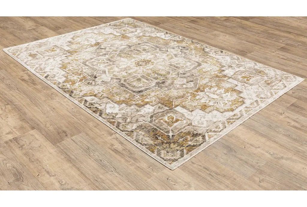 6'6"x9'8" Rug-Marla Traditional Vintage Medallion Gold Rectangle Low Pile