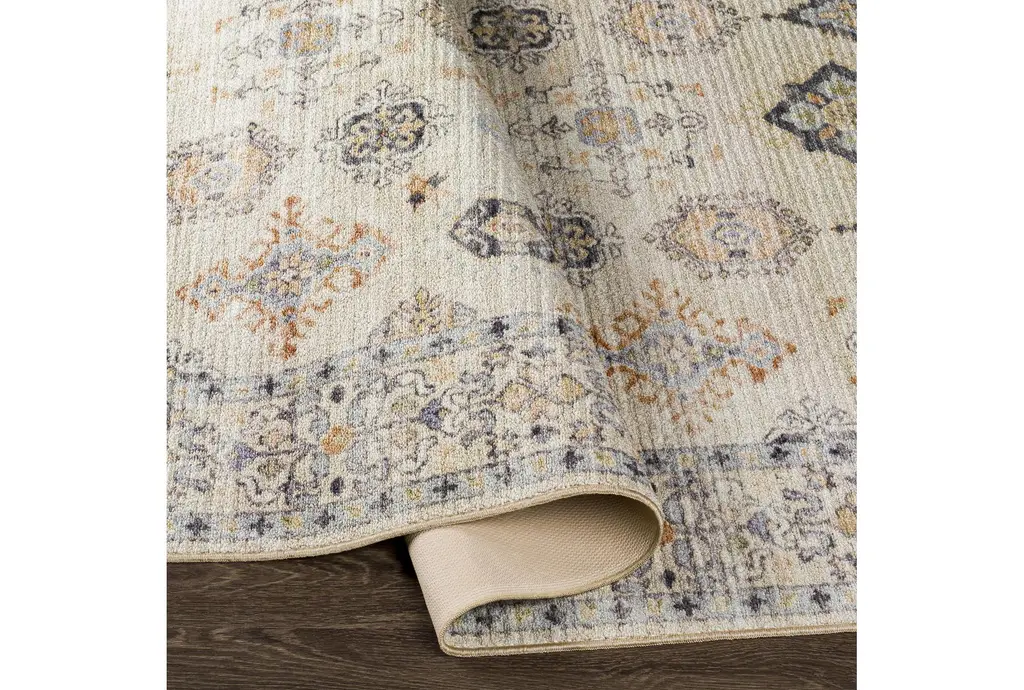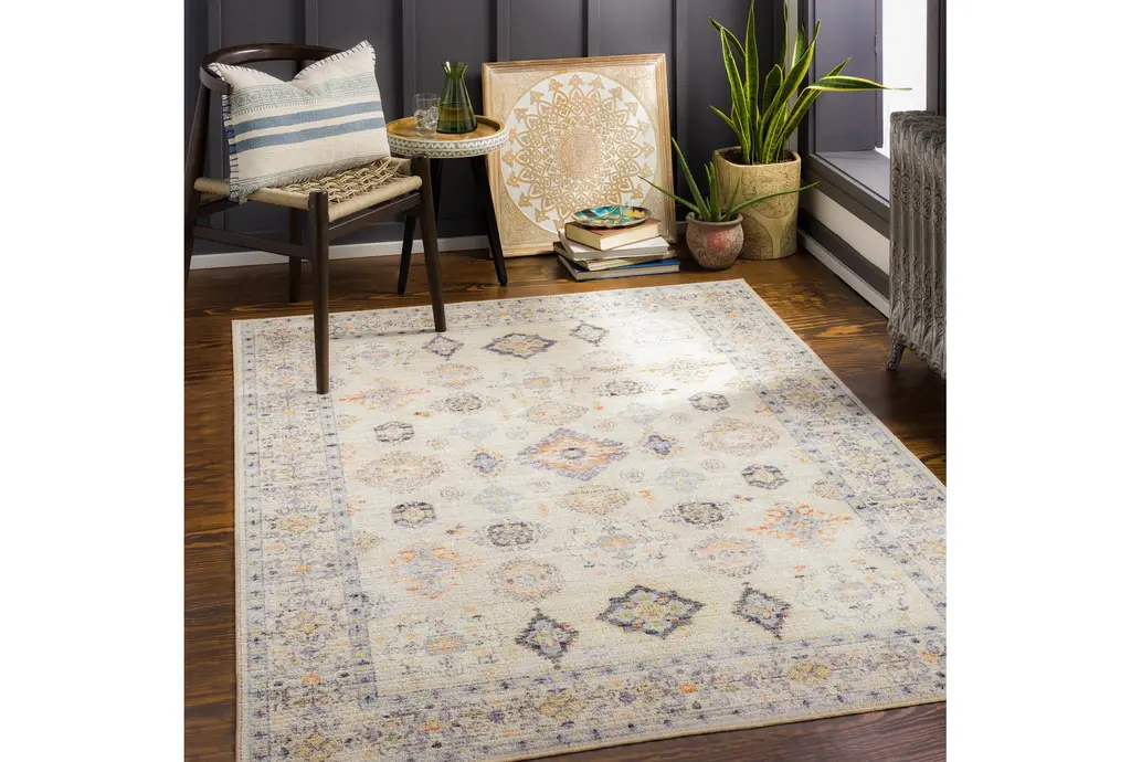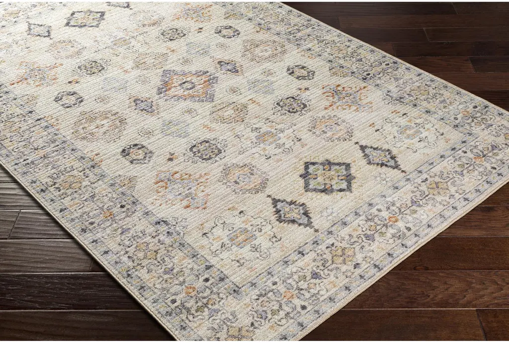 Enhance your interior space with the Leann Traditional Botanical Fabric Rug by Surya. This machine-washable rug features a stunning array of colors including burnt orange, tan, denim, grass green, charcoal, and beige. The intricate botanical design brings a touch of natural beauty to any room.