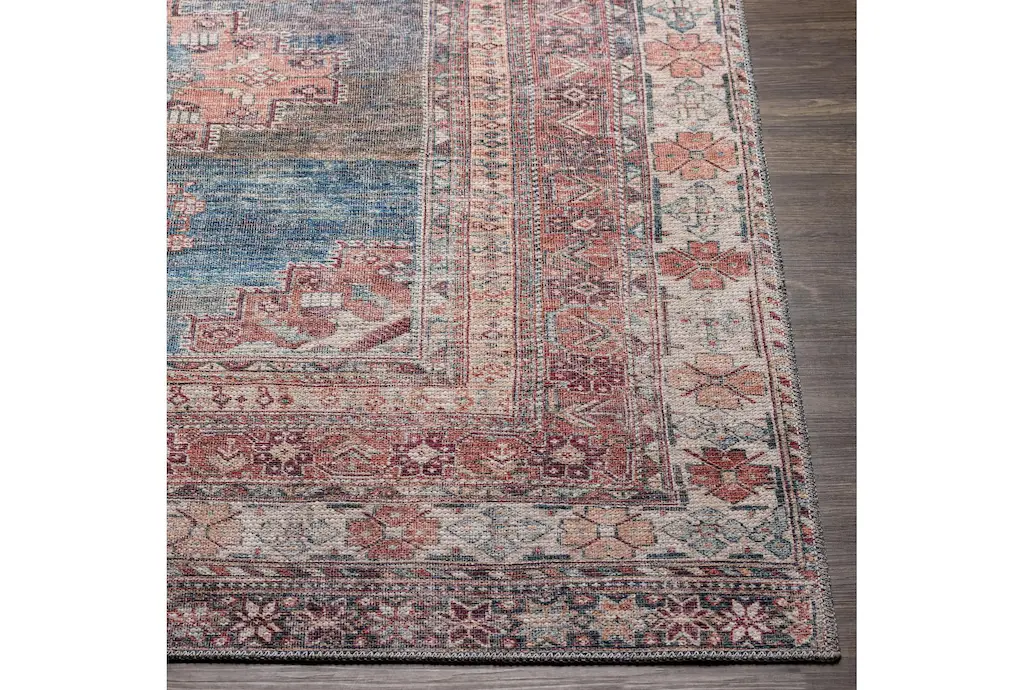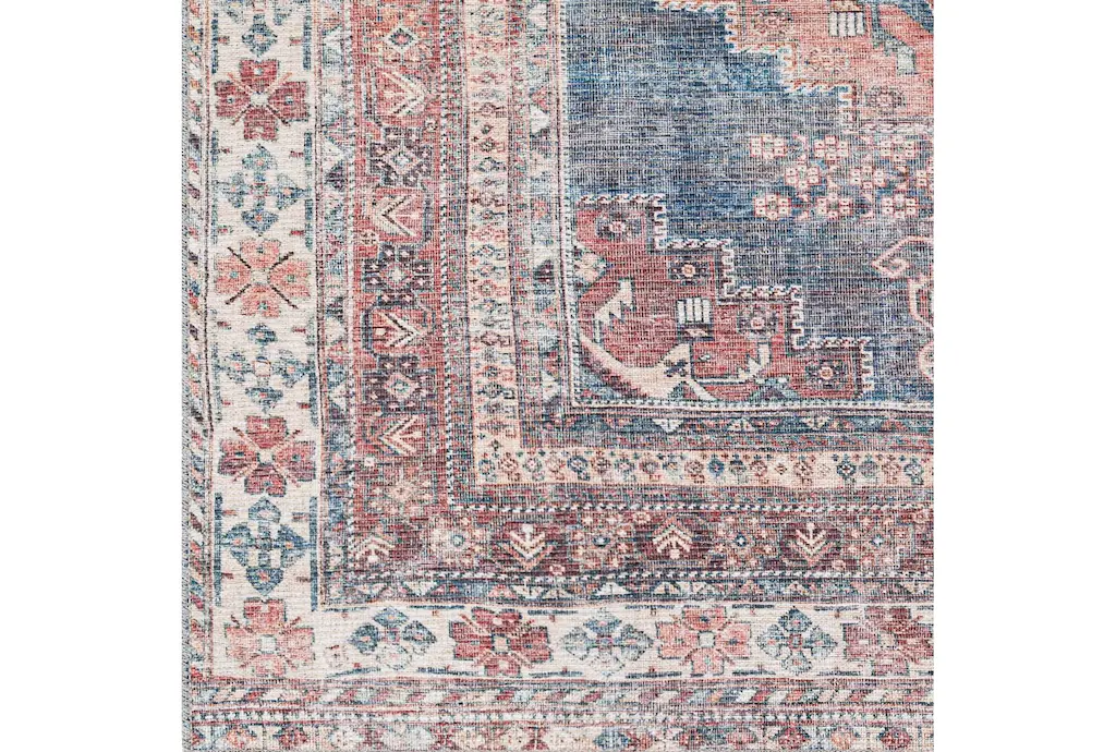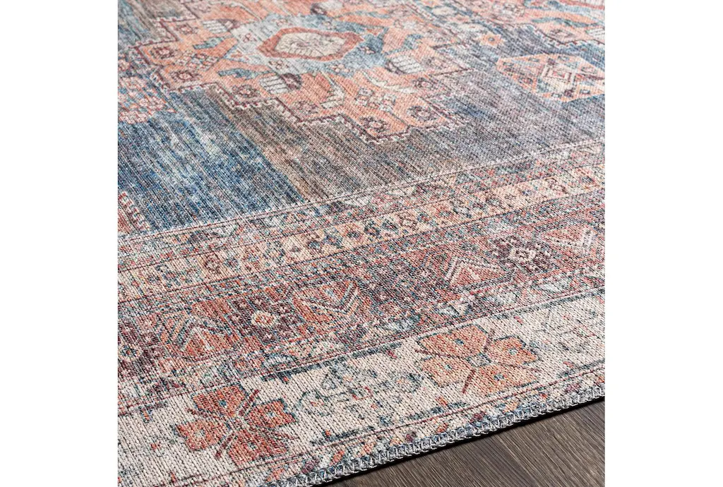 6'7"x9' Rug-Colbourn Traditional Botanical Machine Washable Cotton Fabric Chenille Blue/dusty Coral | Uv Resistant | Performance By Surya