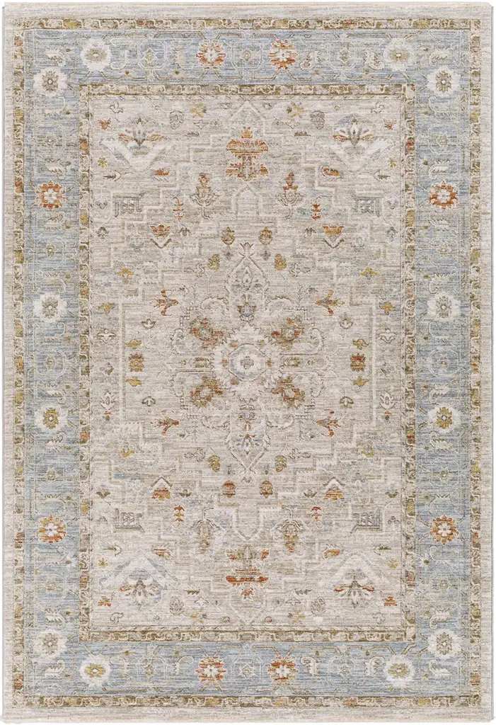 6'7"x9'6" Arya Traditional Medallions Indoor Area Rug Light Blue/beige - Captiv8e Designs