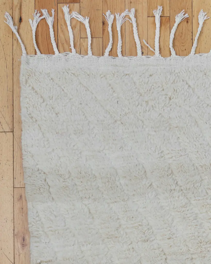 6’8” X 9’4” Aquila Ivory Handmade Moroccan Wool Beni Ouarain Rug