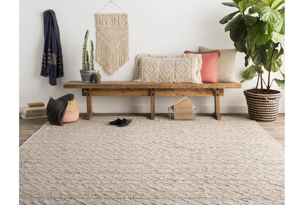 6'x9' Fiber Rug-Diamond Stripe Taupe | Low Pile | Rectangle By Surya