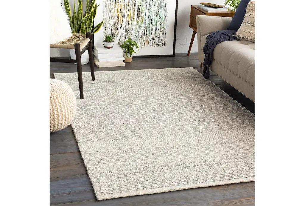 6'x9' Fiber Rug-Modern Global Cream Striped | Chevron | Low Pile | Rectangle By Surya