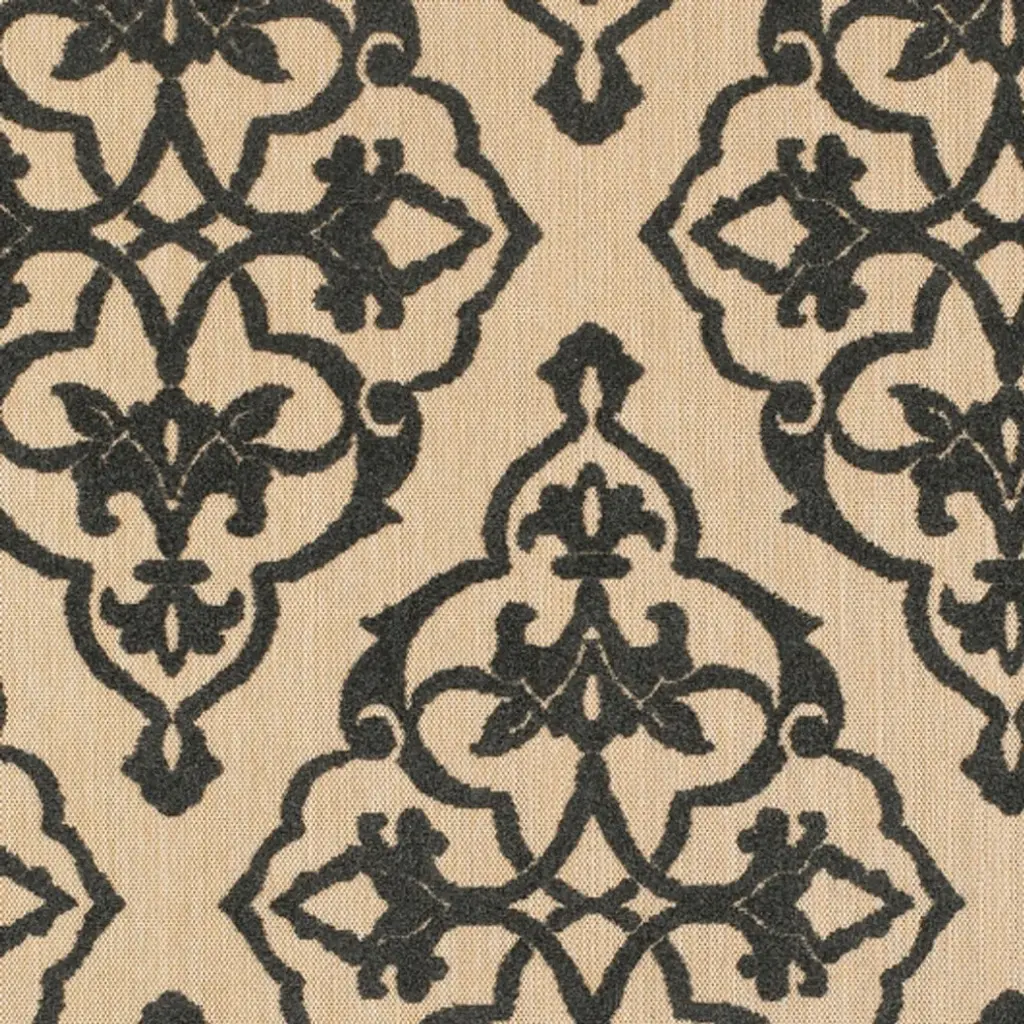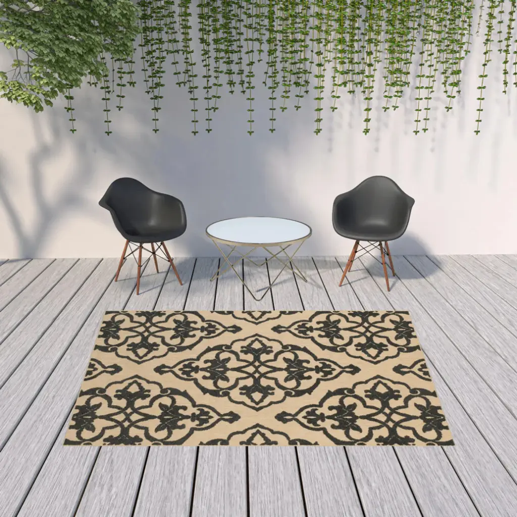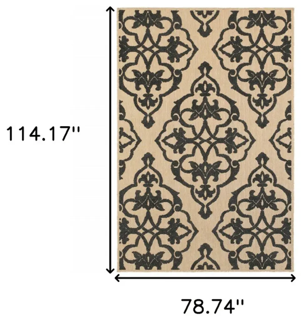 7' X 10' Beige And Black Oriental Stain Resistant Indoor Outdoor Area Rug