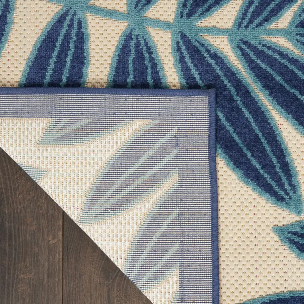 This 7'' x 10'' blue and ivory floral stain resistant indoor outdoor area rug, is a great way to add warmth to a room. This rectangle shaped rug features a floral design in blue and ivory to give it visual interest. A classic shape marries with good looking design for your space Made in Turkey, this rug offers high quality combined with good looking designer sensibilities. Ideal for spaces with kids and pets, this rug is stain resistant to help repel stains and spilled liquids. Place this area rug against a hardwood or tile floor and it will enliven your living space with style and sophistication. 1" H x 84" W x 120" D