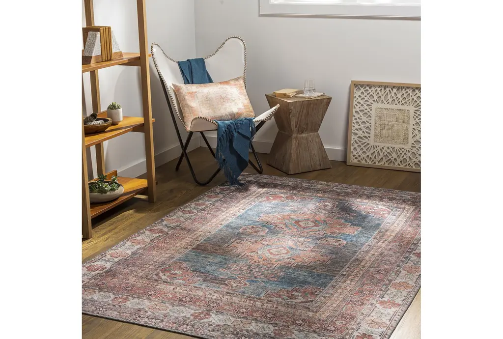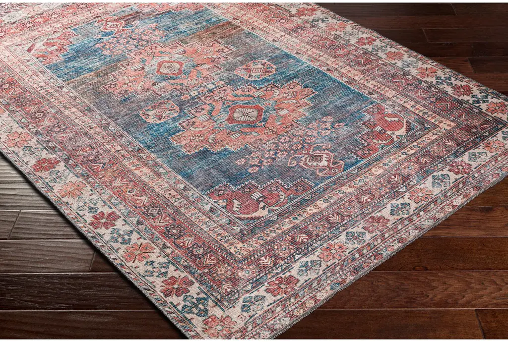 7'10"x10'2" Rug-Colbourn Traditional Botanical Machine Washable Cotton Fabric Chenille Blue/dusty Coral | Uv Resistant | Performance By Surya