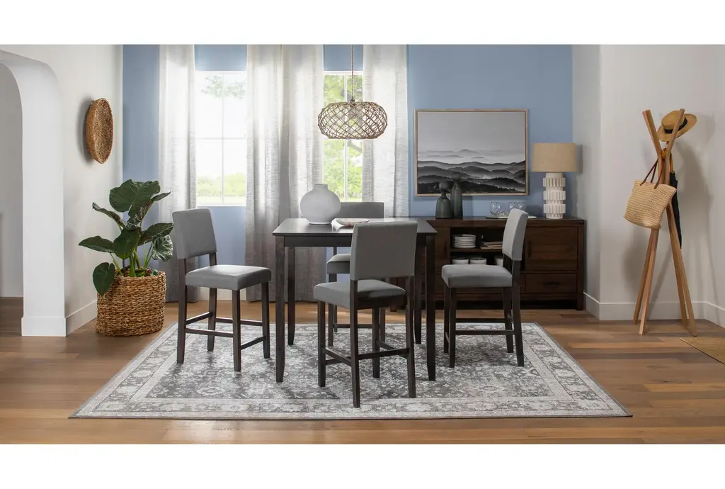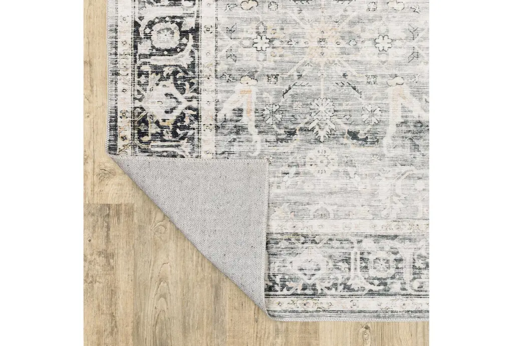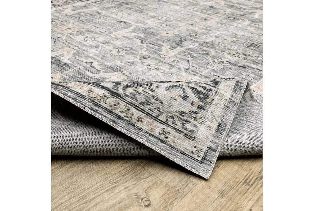 7'5"x10' Rug-Shem Creek Traditional Botanical Machine Washable Charcoal | Uv Resistant | Non Slip | Performance | Rectangle