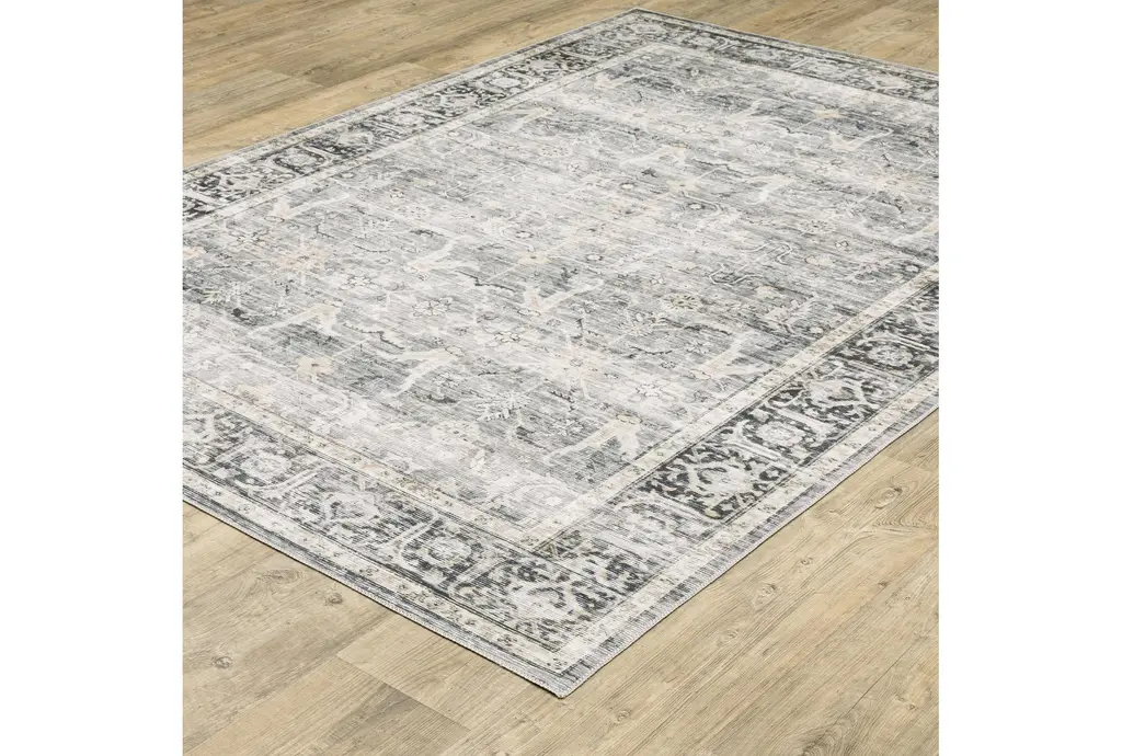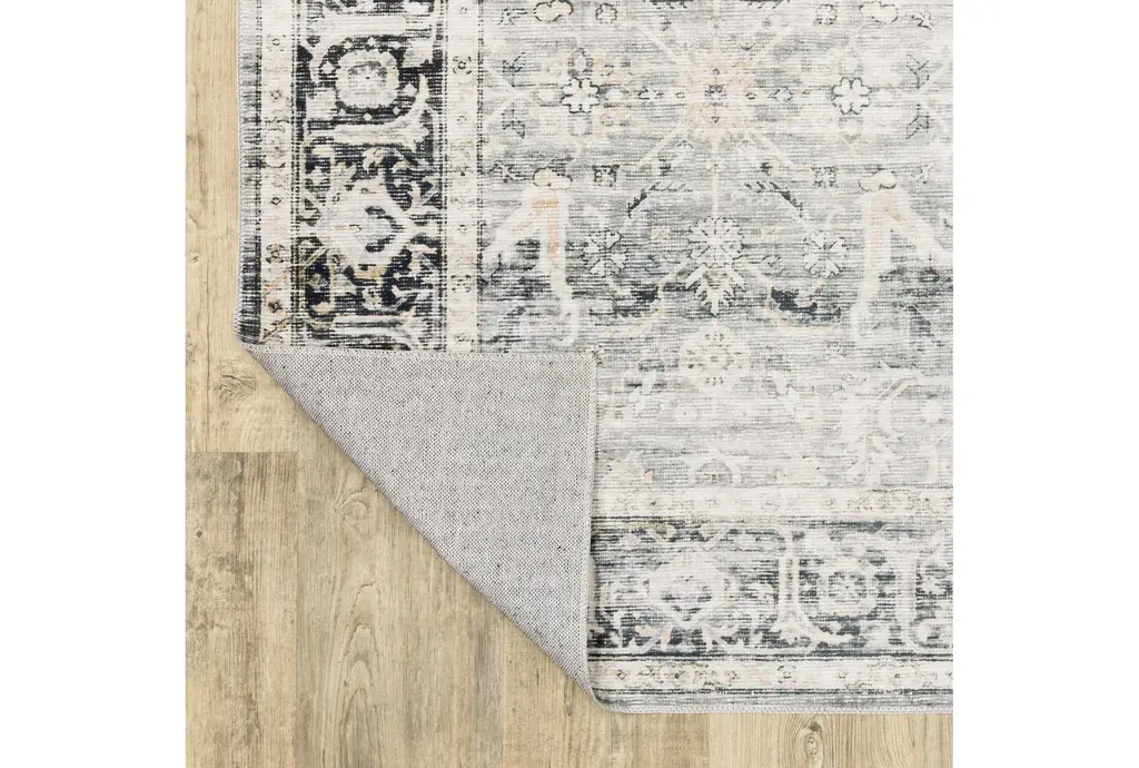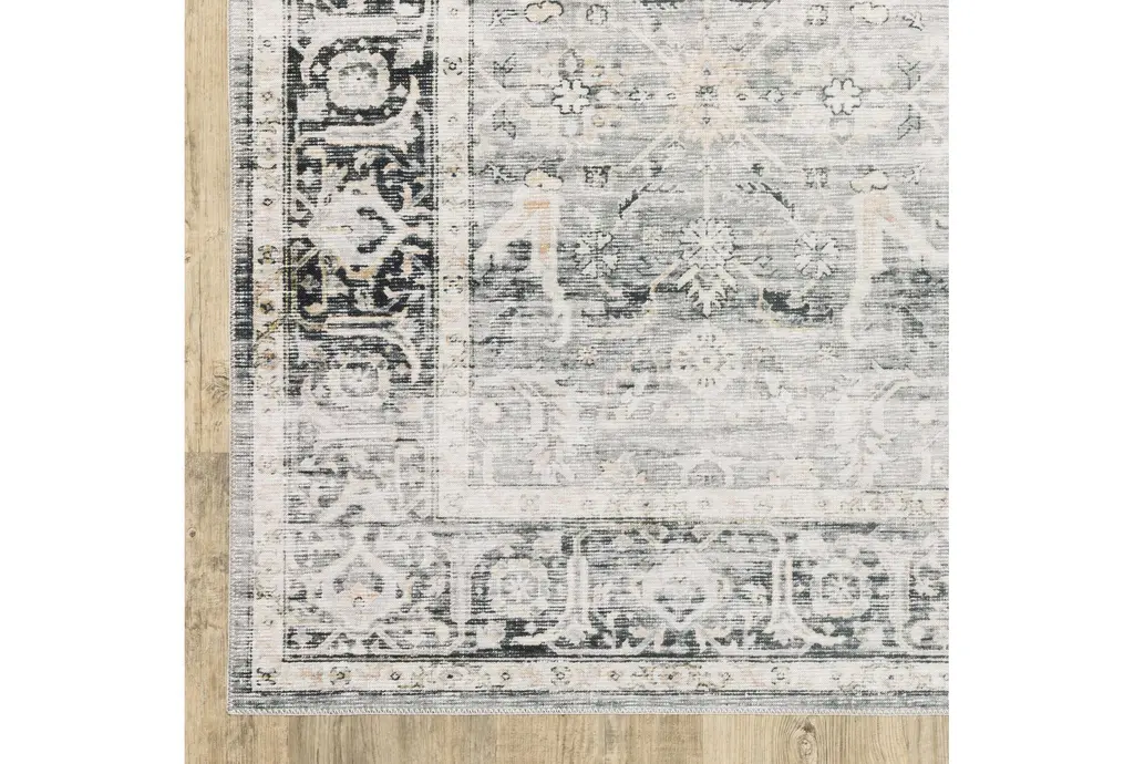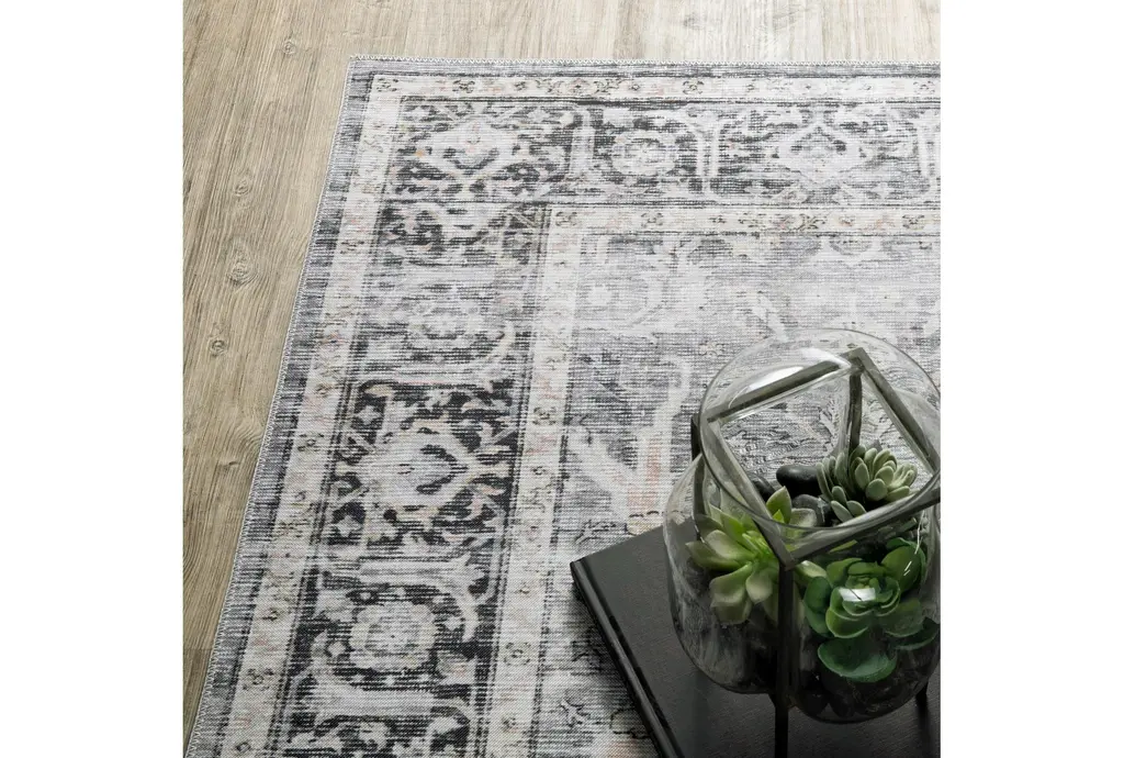 7'5"x10' Rug-Shem Creek Traditional Botanical Machine Washable Charcoal | Uv Resistant | Non Slip | Performance | Rectangle