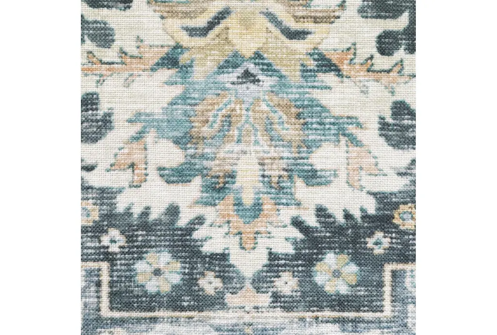 7'5"x10' Rug-Shem Creek Traditional Botanical Machine Washable Medallion Blue | Uv Resistant | Non Slip | Performance | Rectangle