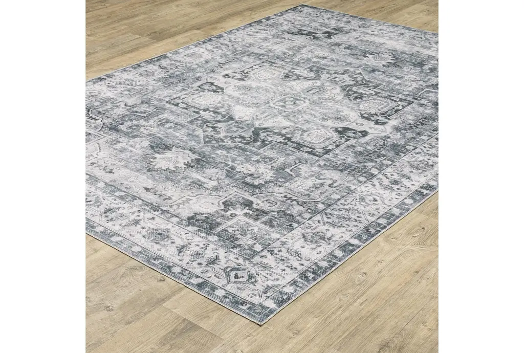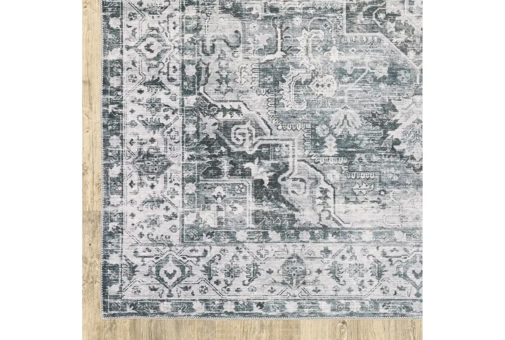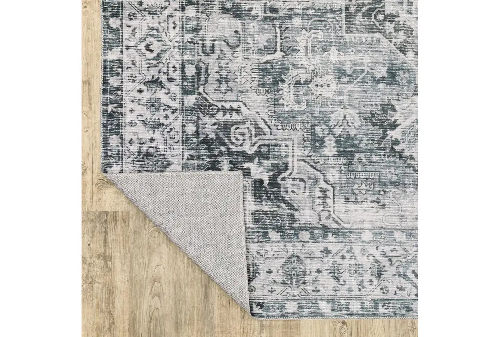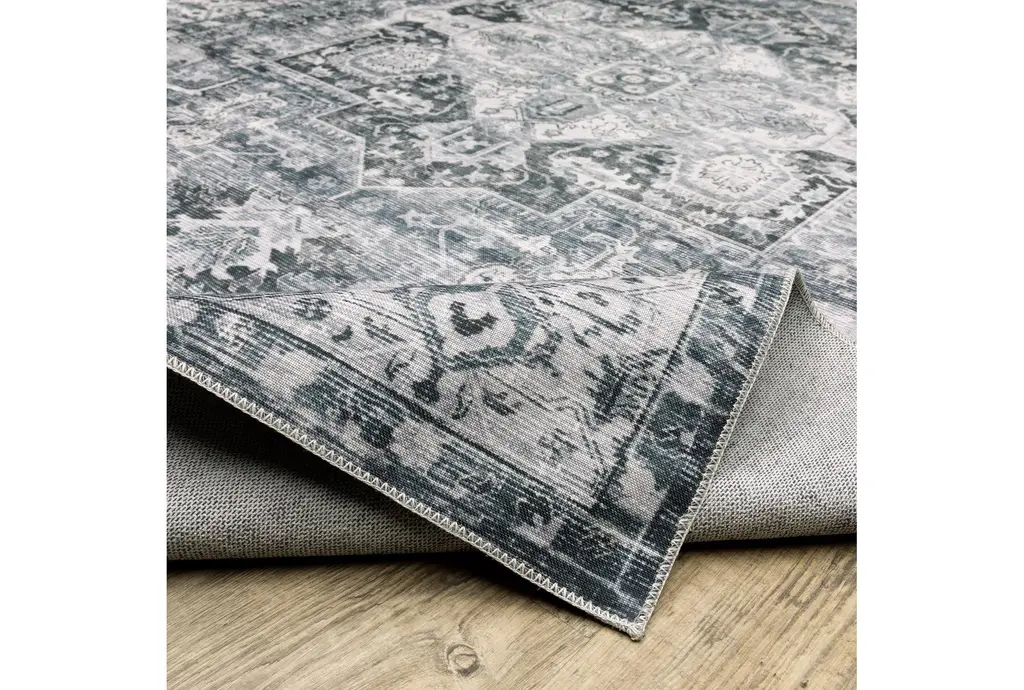 7'5"x10' Rug-Shem Creek Traditional Botanical Machine Washable Medallion Grey | Uv Resistant | Non Slip | Performance | Rectangle