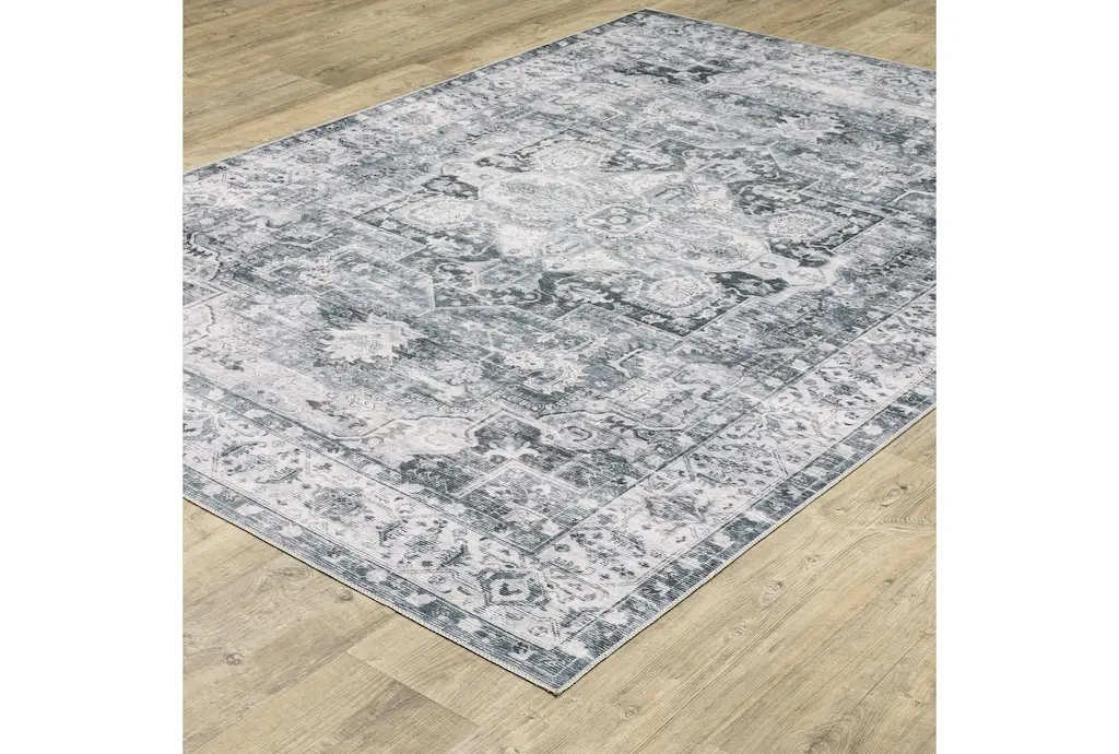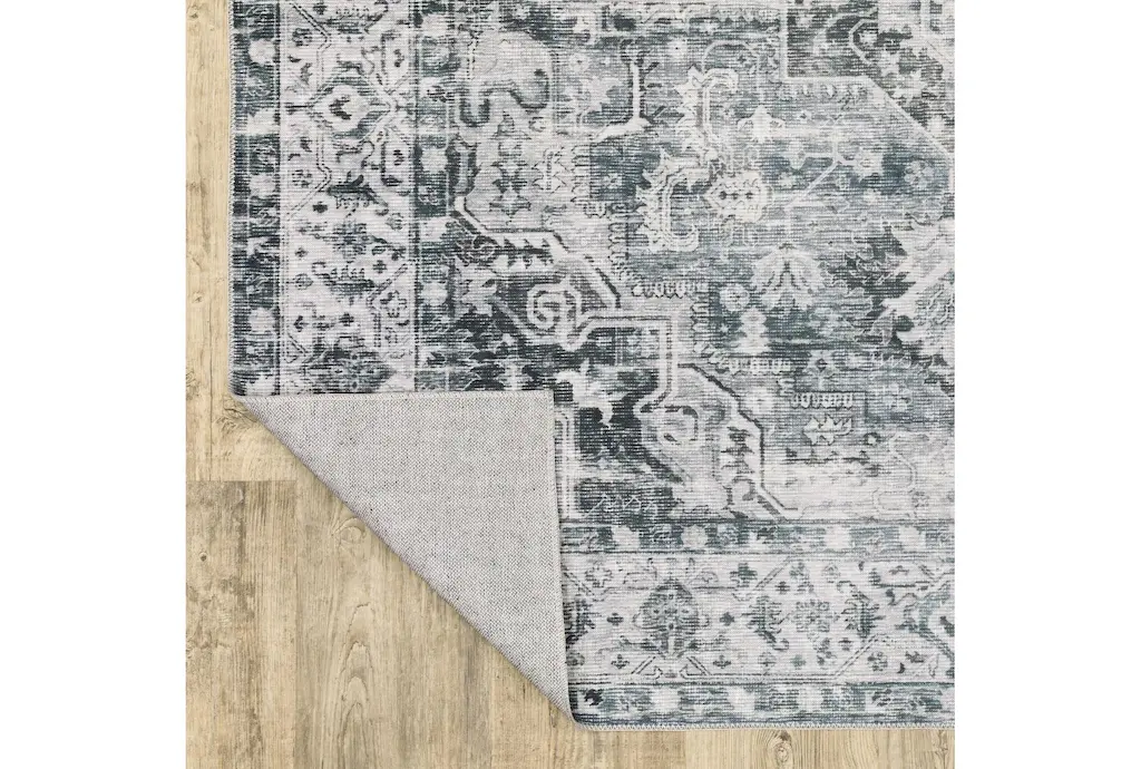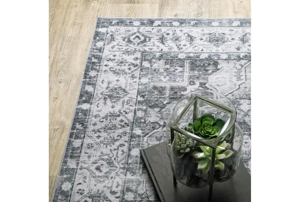 7'5"x10' Rug-Shem Creek Traditional Botanical Machine Washable Medallion Grey | Uv Resistant | Non Slip | Performance | Rectangle