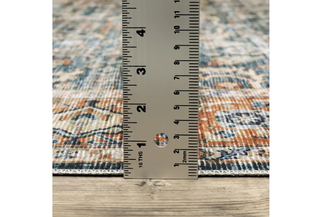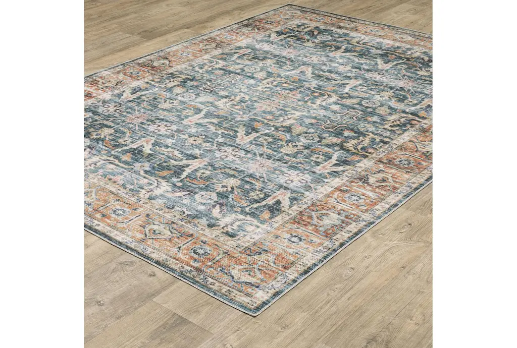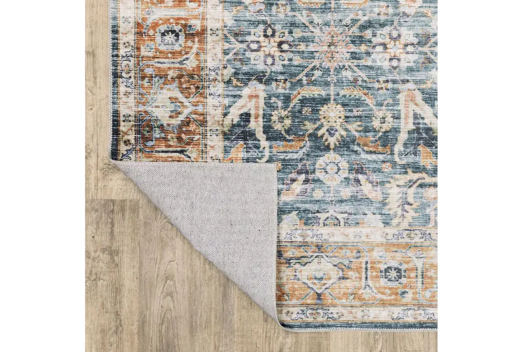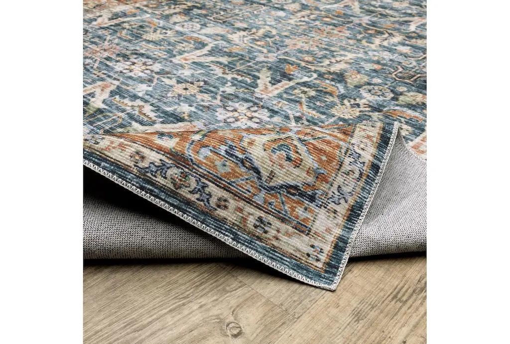 7'5"x10' Rugshem Creek Traditional Botanical Machine Washable Blue/rust | Uv Resistant | Non Slip | Performance | Rectangle