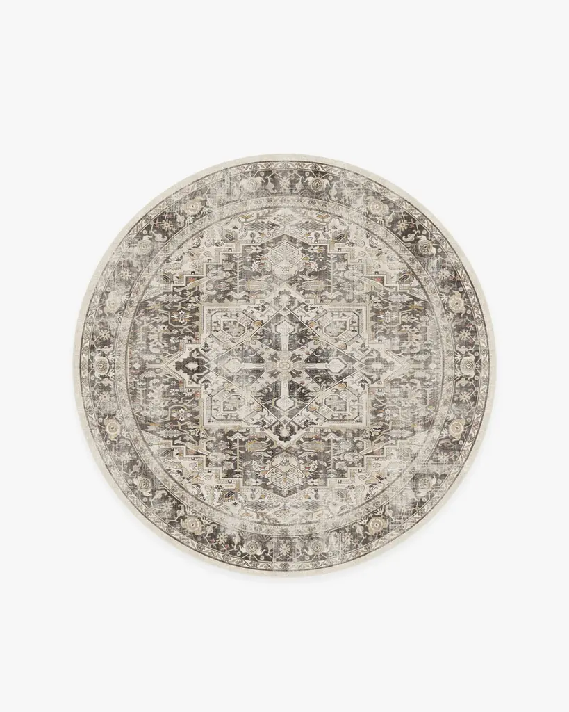 7'8" Round Fiber Rug-Modern Global Muted Grey And Khaki | Low Pile | Abstract By Surya