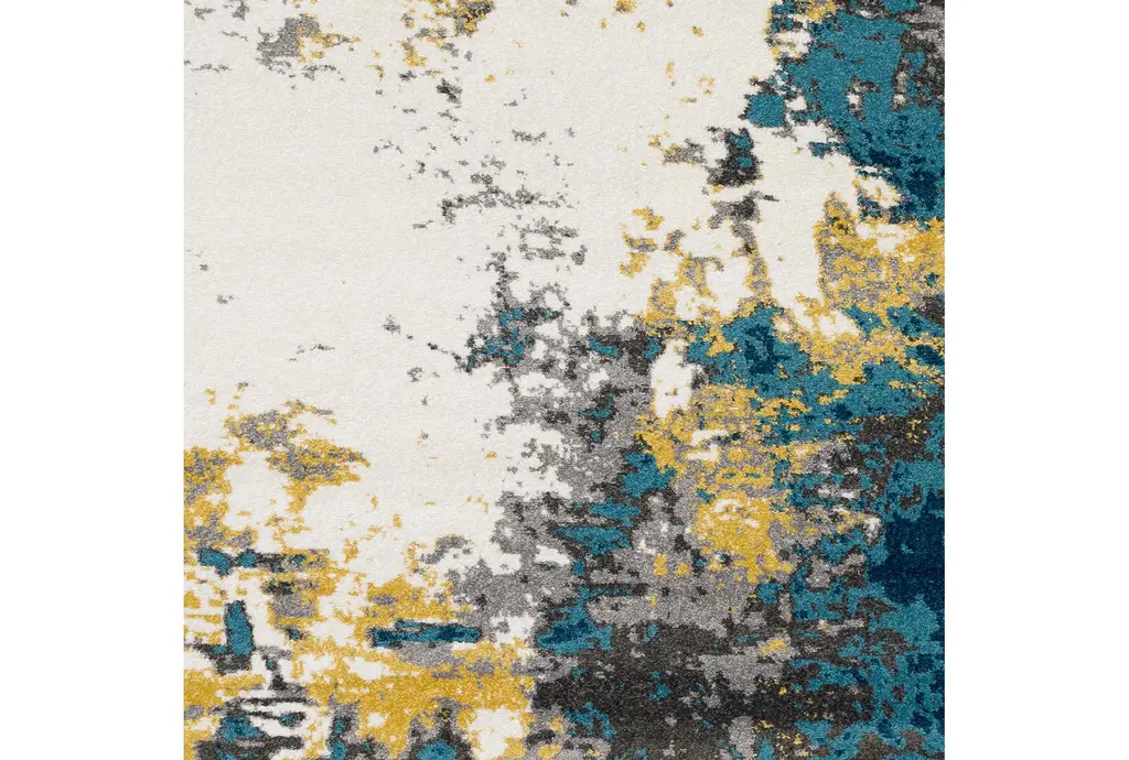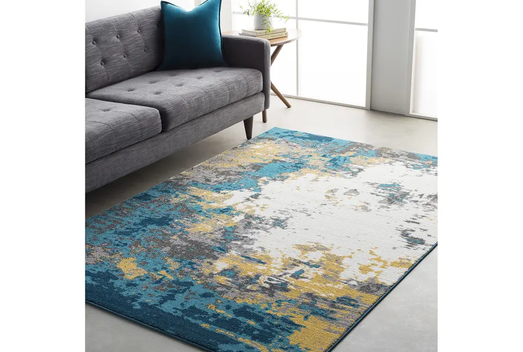 Enhance your living space with the 7'8"x10' Fiber Rug by Surya, featuring a modern abstract design in aqua, bright blue, mustard, charcoal, cream, and medium grey. This low pile rug is perfect for adding a touch of contemporary style to any indoor setting. Its rectangle shape and large size make it an ideal centerpiece for your living room.