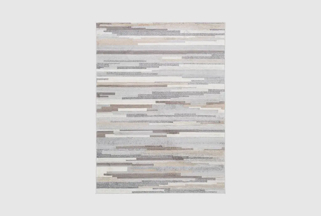 7'8"x10' Rectangle Fiber Rug | Modern Grey/camel Abstract Stripe | Indoor | Low Pile By Surya