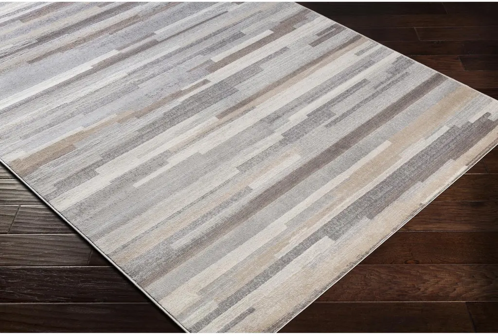 This 7'8"X10' Rectangle Fiber Rug by Surya features a modern grey and camel abstract stripe design. Perfect for indoor use, this rug has a low pile that is both stylish and functional. It is crafted from 100% polypropylene, ensuring durability and ease of maintenance.