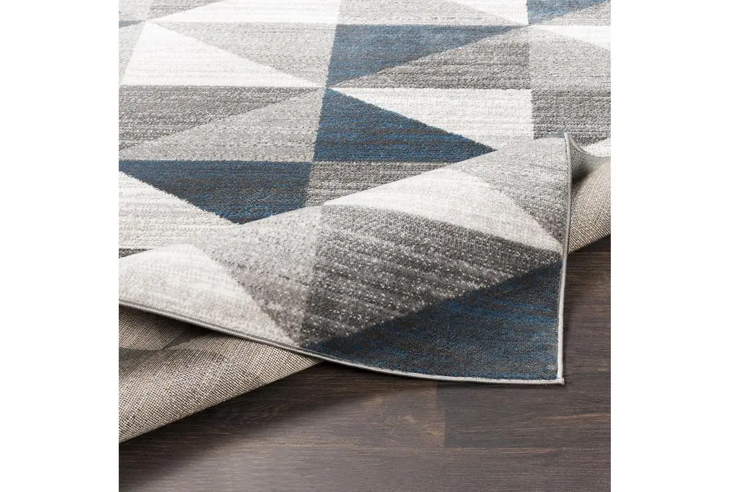 Transform your living space with the 7'8"x10'2" Fiber Rug by Surya. Featuring a modern geometric design in light grey, white, charcoal, and sky blue, this large indoor rug adds a stylish touch to any room. The low pile makes it perfect for high-traffic areas, ensuring durability and ease of maintenance.