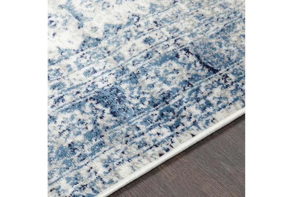 Introducing the 7'8"x10'2" Fiber Rug by Surya, a stunning addition to any living room. This traditional rectangular rug features a blend of sky blue, light grey, white, and navy, bringing a soft and inviting touch to your indoor space. The low pile design ensures easy maintenance and durability, making it perfect for high-traffic areas in your home.