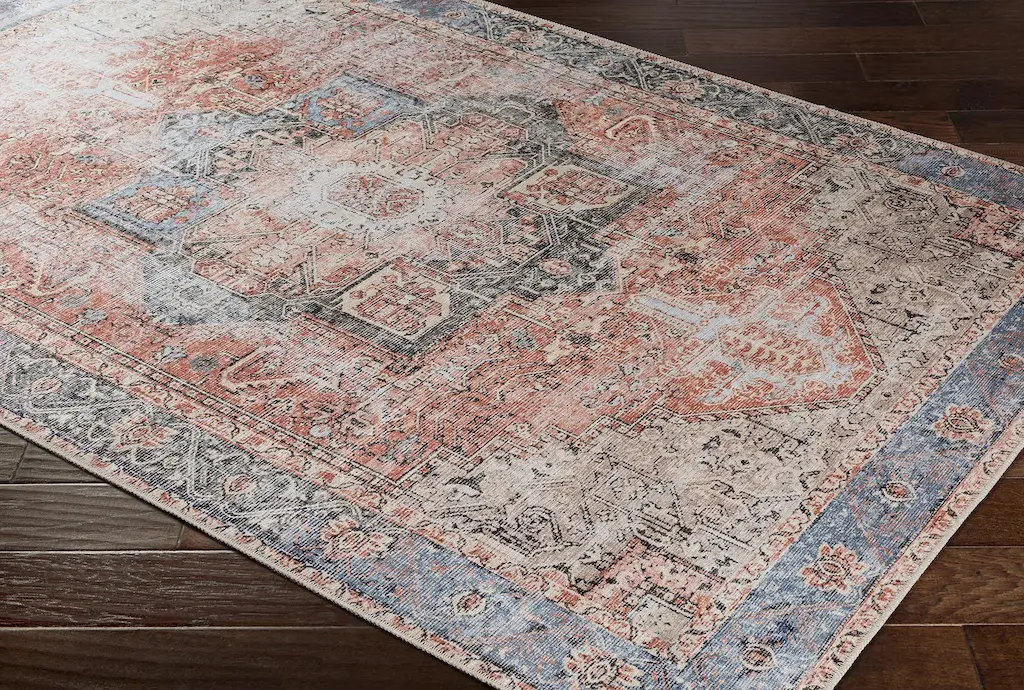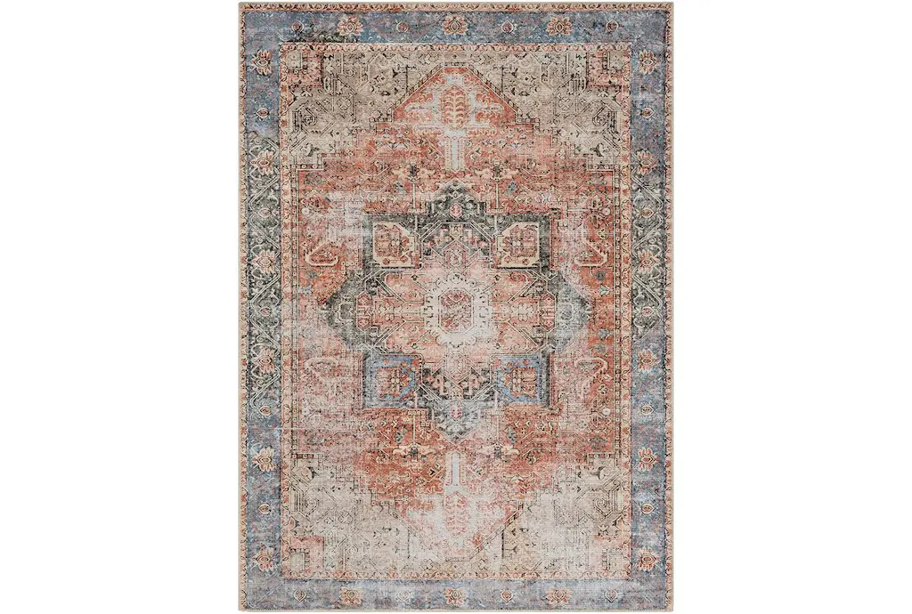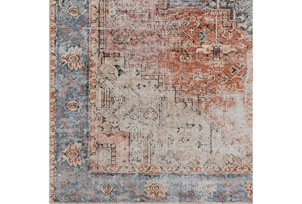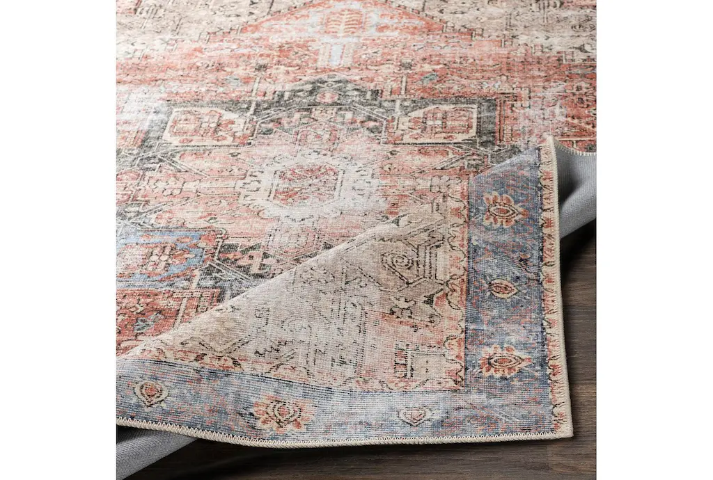 7'8"x10'2" Fiber Rug-Traditional Machine Washable Botanical Distressed Multicolor | Low Pile | Rectangle By Surya