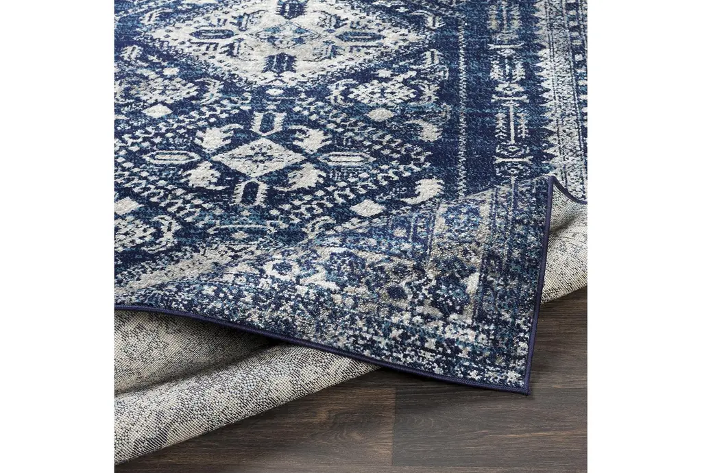 7'8"x10'2" Fiber Rug-Traditional Navy | Low Pile | Rectangle By Surya